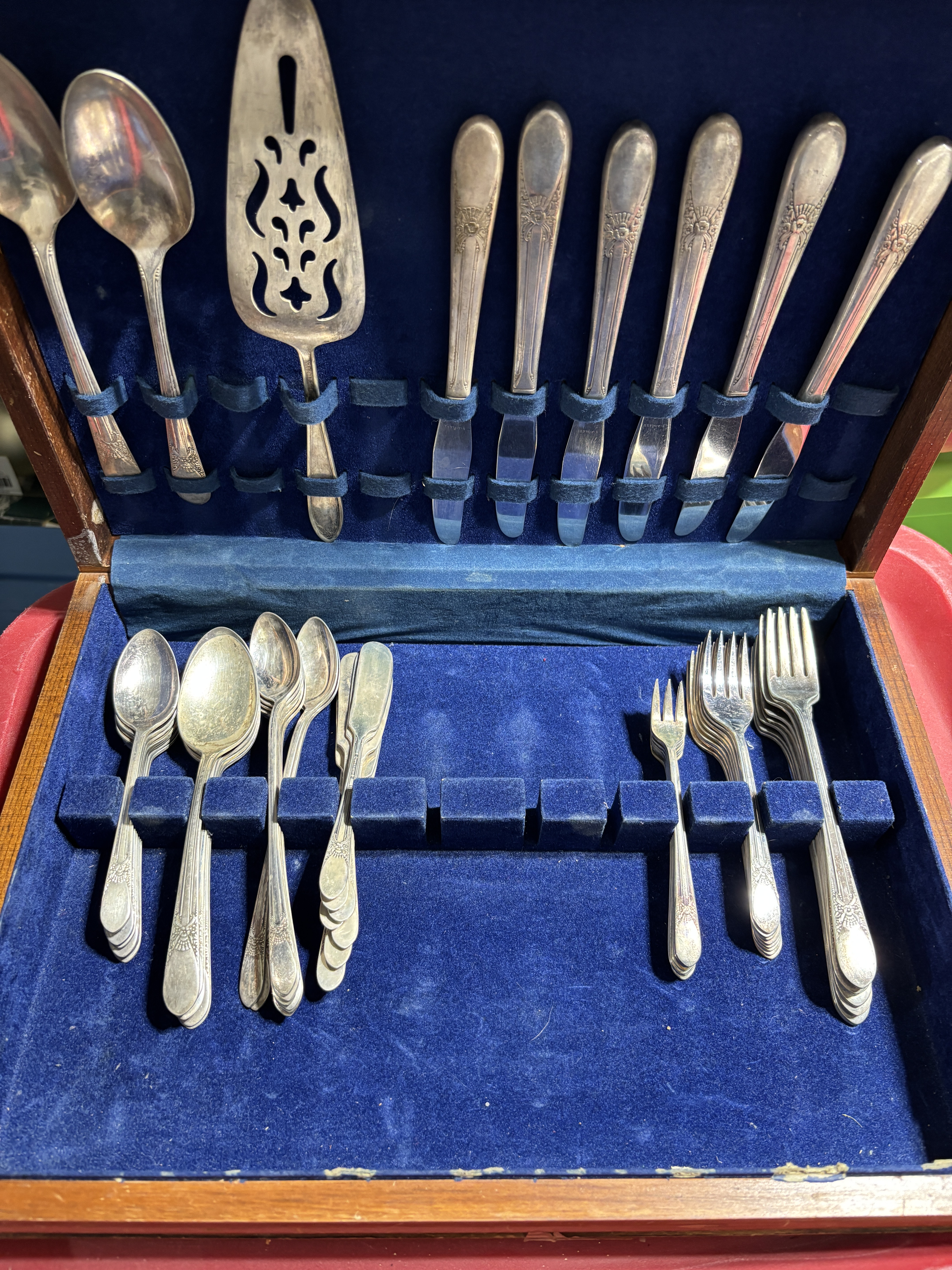 Going through some old boxes that have been packed away for 20+ years I found my great Grandmother's sterling silverware set. Granted I would never sell it, but there is a chuck of silver in this box.