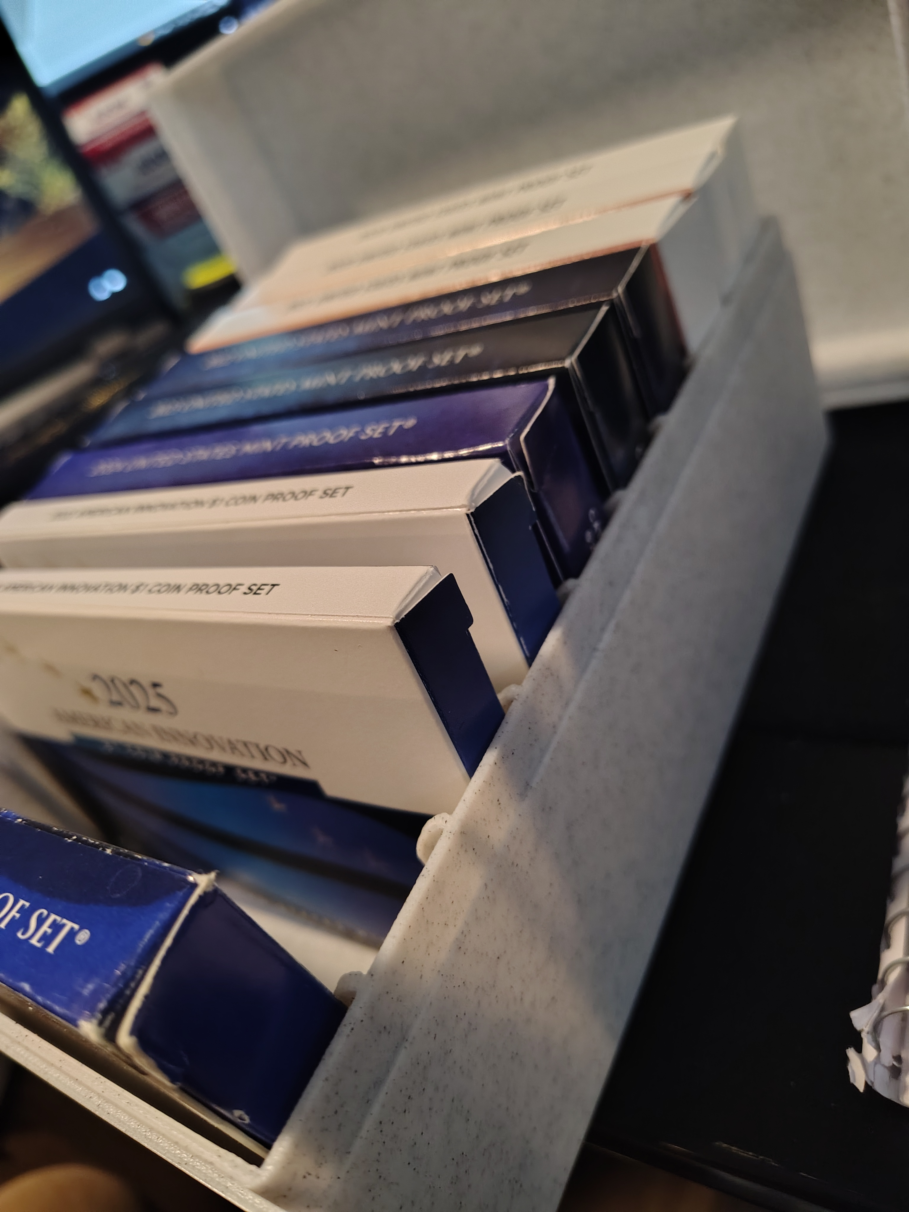 This would allow many modern proof / mint sets to be contained in a single box.