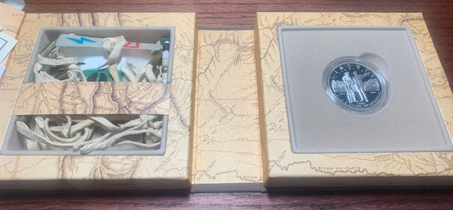 -I picked up a "guilty pleasure" Lewis and Clark Commem with the Native American pouch. I always thought these were neat and they go for little premium at the shows. This one had a pouch design I've never seen so I had to have it. I have another at home made by a woman with my wife's maiden name, which was neat. I appreciate the craftsmanship more than the coin.