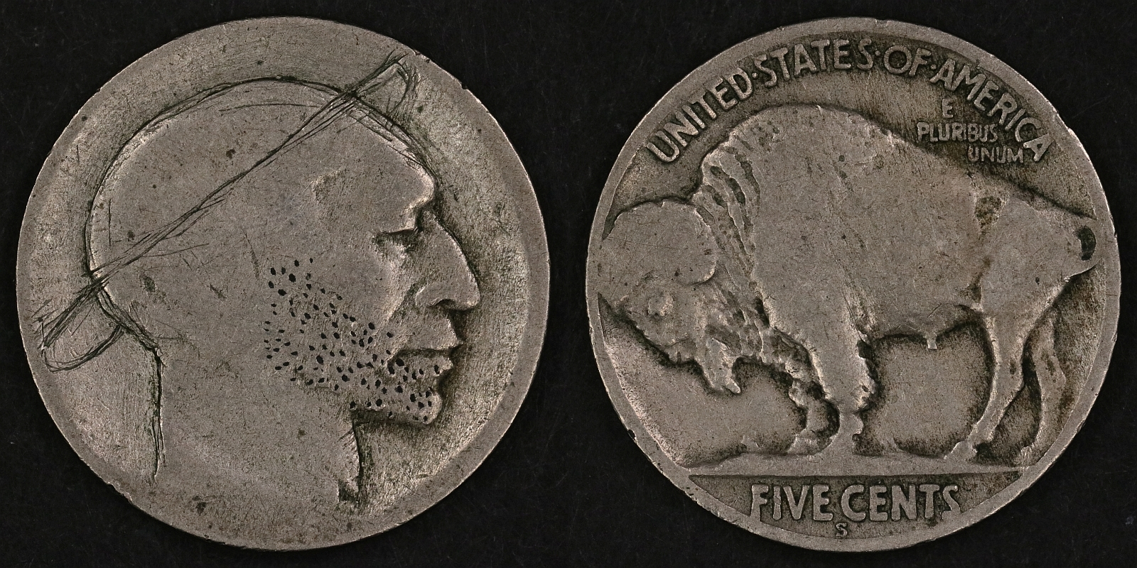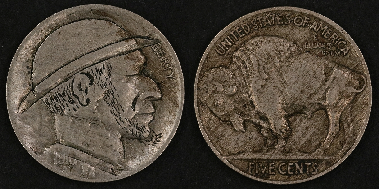 In the process of cleaning everything out, she found the below 4 hobo nickels. I had been asked if I thought they were authentic period pieces years ago, but don't know enough about them to answer and assumed she'd sold them. She's shown them to several others who might know, and got the same response.