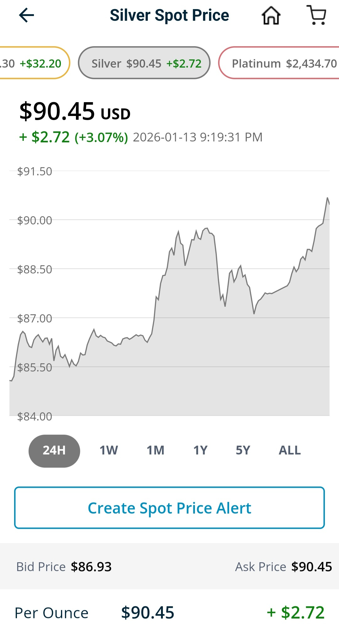 Never dropped $95 an ounce specifically on a silver ounce but it just feels right.
