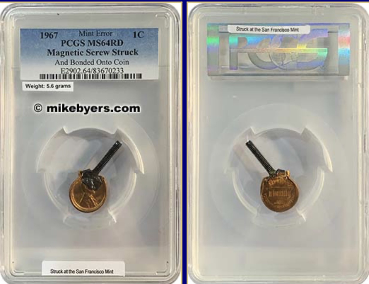 The Lincoln Cent bonded with the screw that I sold to a customer for 25k, was graded MS 64 as well. Having the design on the full size planchet makes it easier to determine a grade. I have no idea regarding the grade on the struck screw.