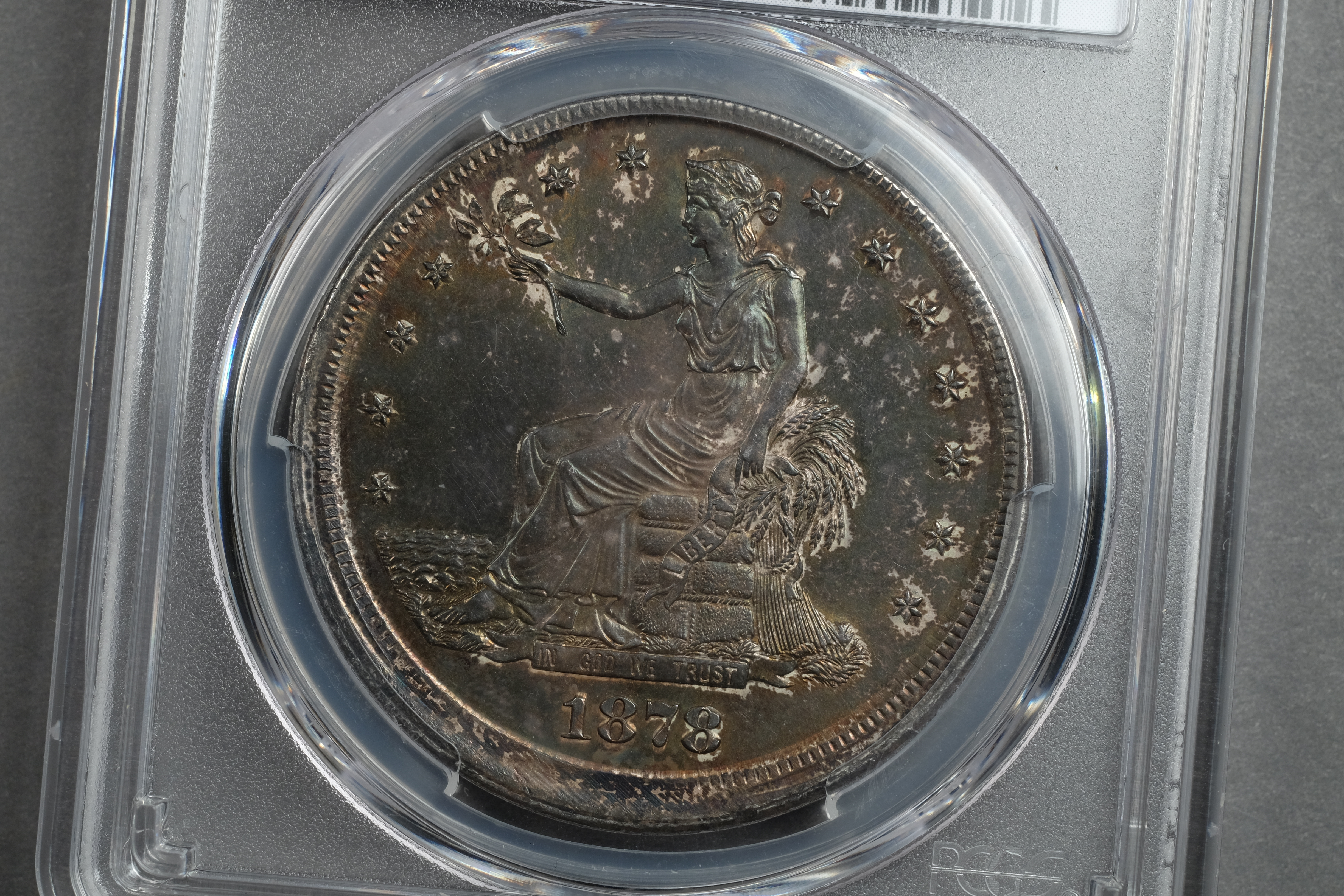 Sure! This a 78-S broadstruck 5% offset Trade Dollar in PCGS MS-63. I now have about 5 Trade Dollar errors. As Jon noted, they are incredibly rare as I think that the minting quality was quite high for Trades.