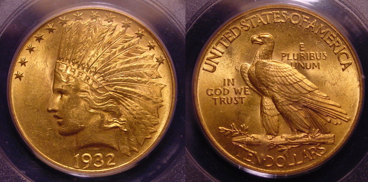 The 1932 eagle is the only gold coin from the 1930s which most collectors can afford. This one is graded MS-63. Many of them are overgraded perhaps because they were to marketed for sales to non collectors.