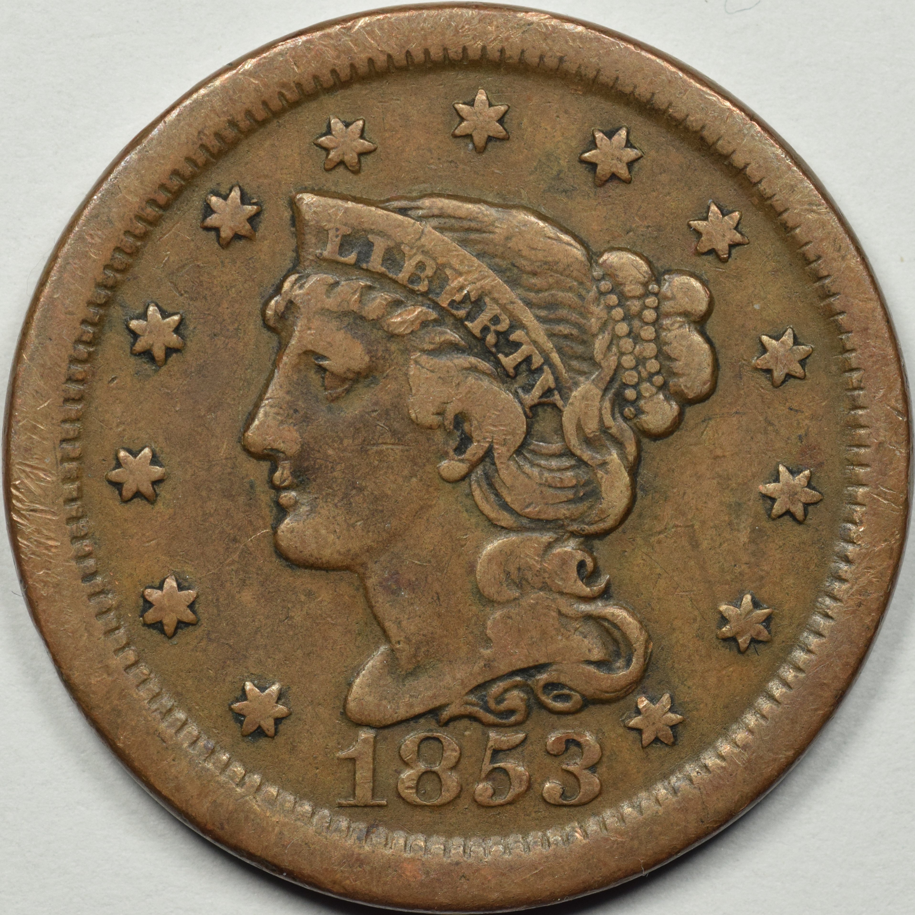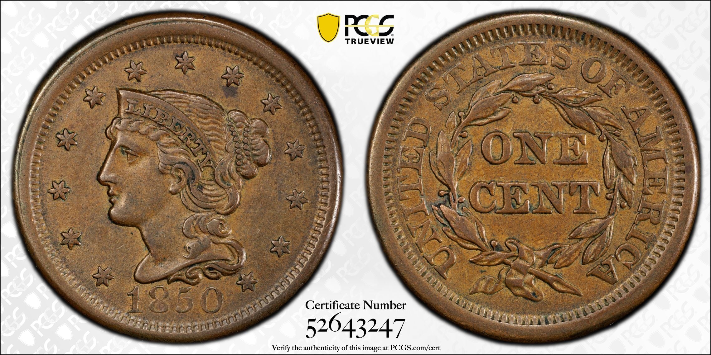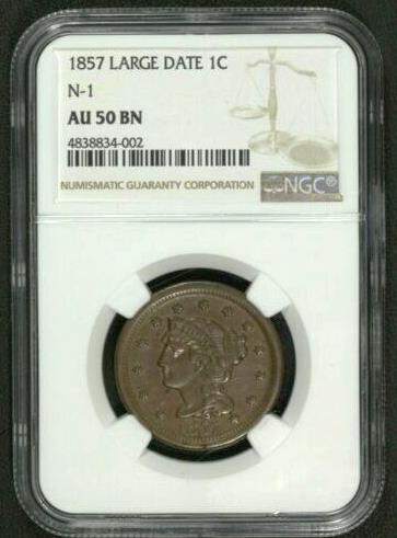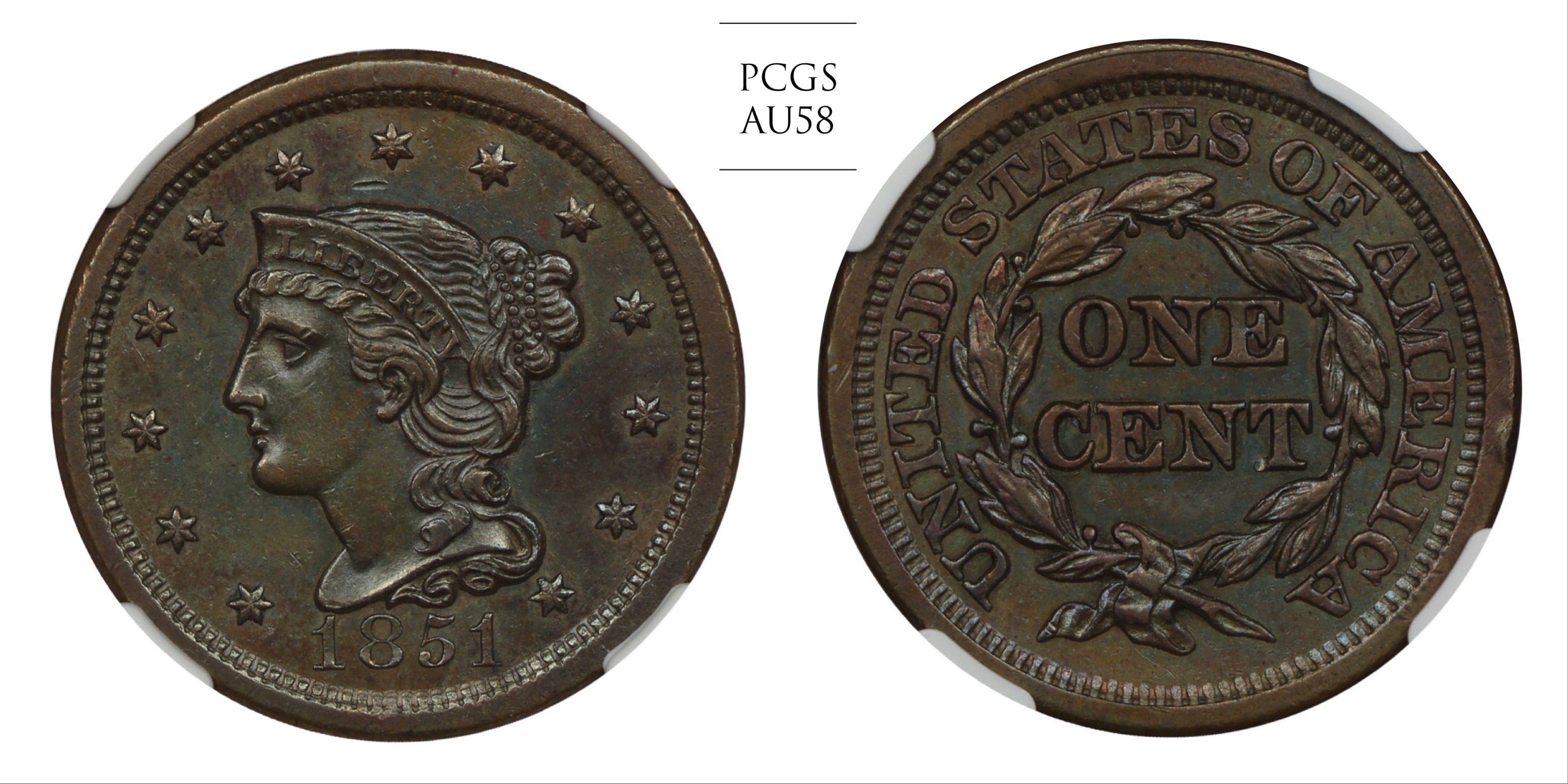 The 1840 large cent with the oddly placed date, as Gobrecht did it, is interesting. This is PCGS graded AU-53.