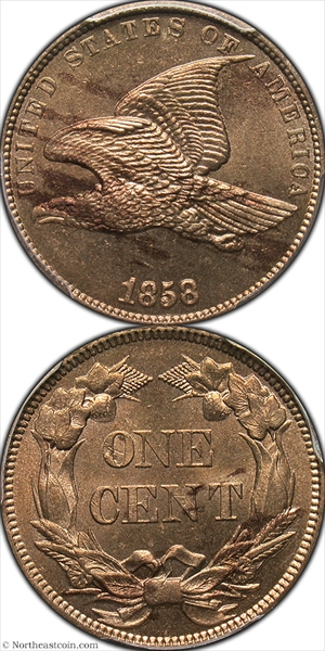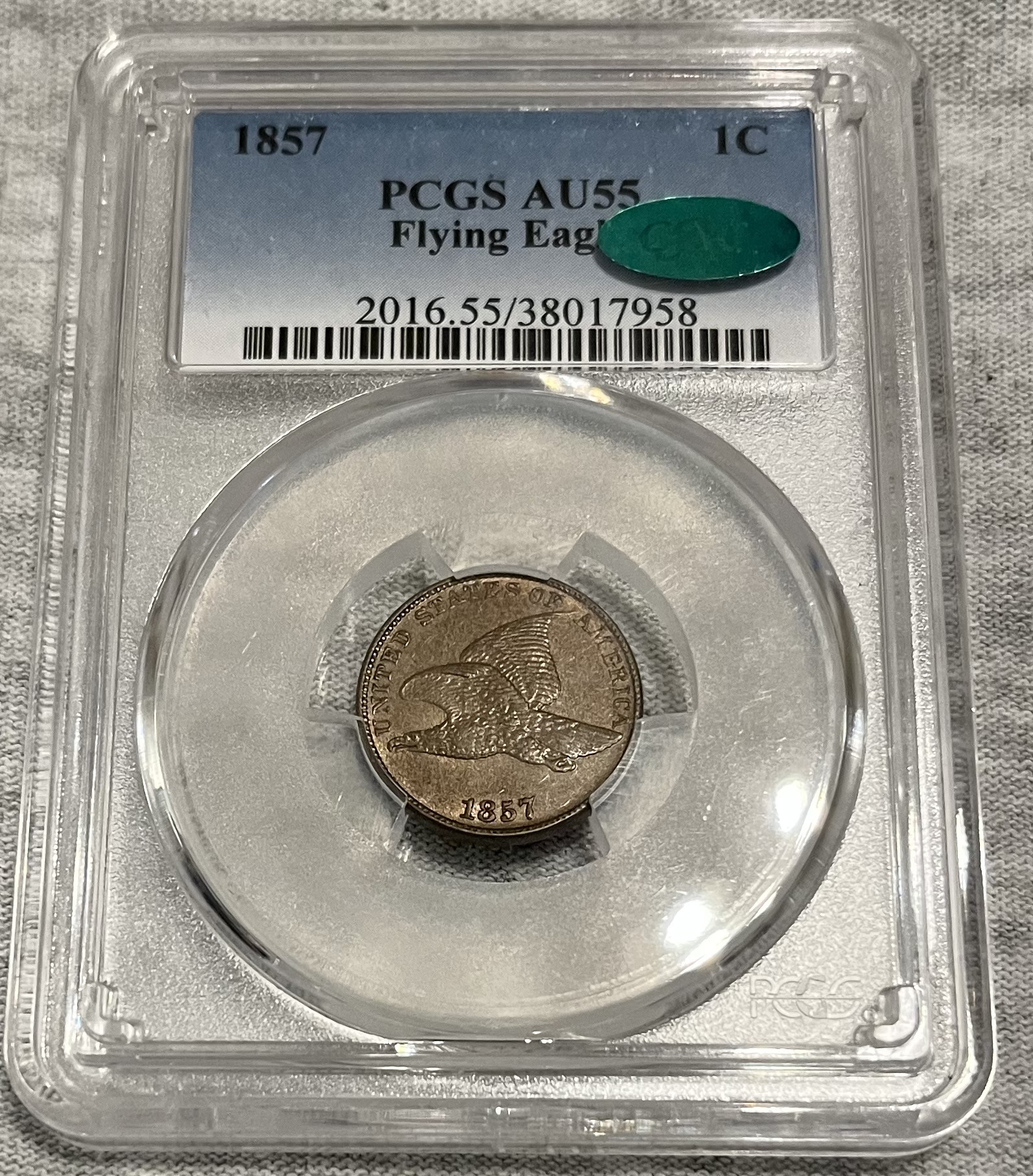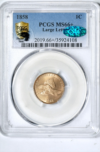 Ok, here’s one of my Flying Eagle Cents. I bought this at auction as a MS66, and when I received it in hand, I liked it so much I sent it back to PCGS for Reconsideration. Sure enough, they agreed, and added on the plus. (That little plus more than doubles the value.)