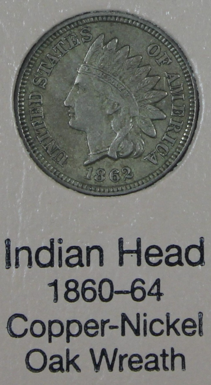That type is the Indian Cent Copper-Nickel Oak Wreath (1860-1864).