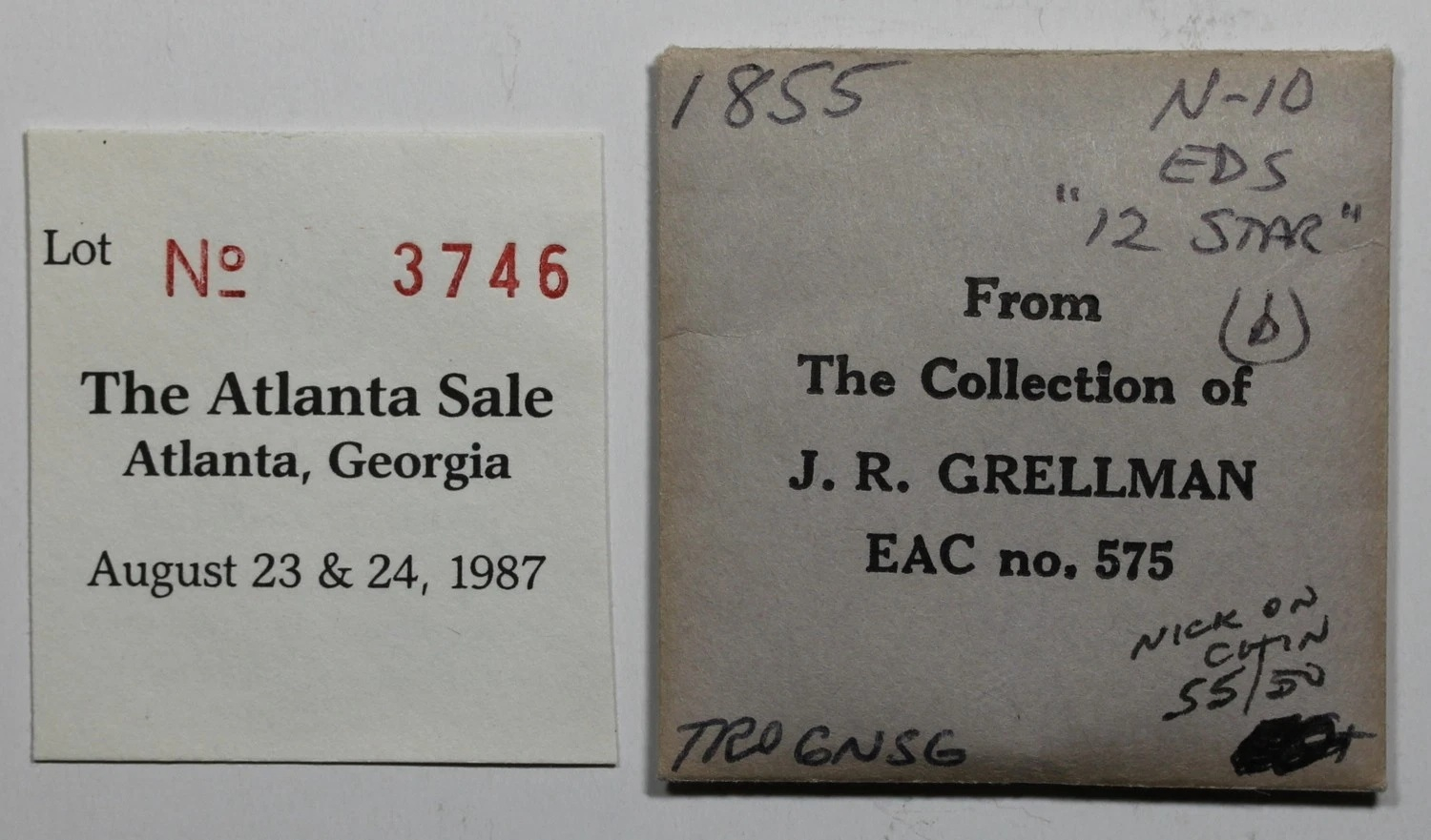 ...and an 1855 N-10 "12-Star" with Grellman card...