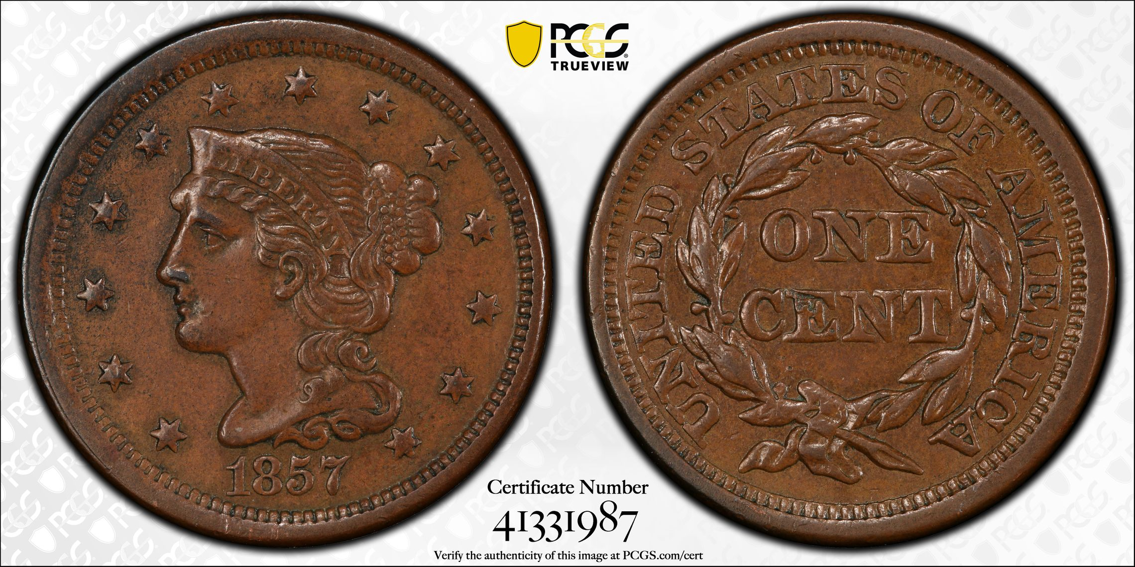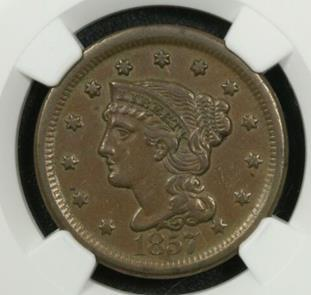 As a collector, I have long gone out of my way to have a nice 1857 large cent, which was the last of its kind. (Unless you are into the crazy 1868 pattern large cent!) And yes, this is still a raw coin. My grade is MS-64, Brown.