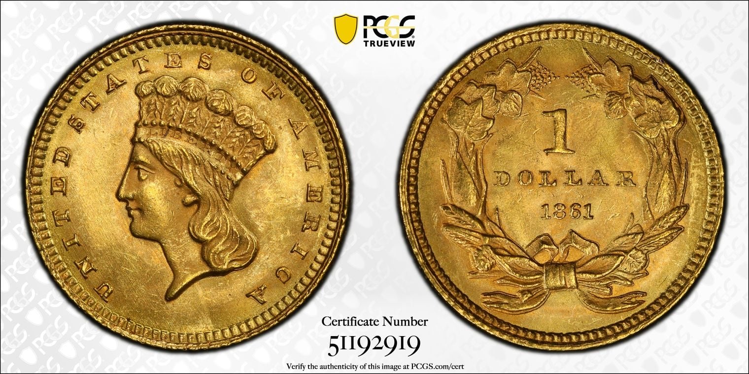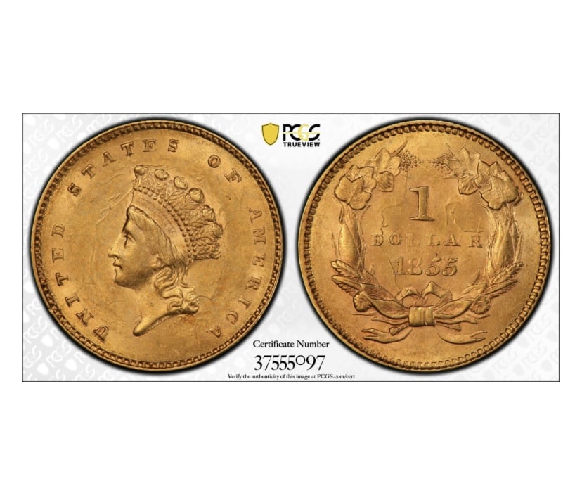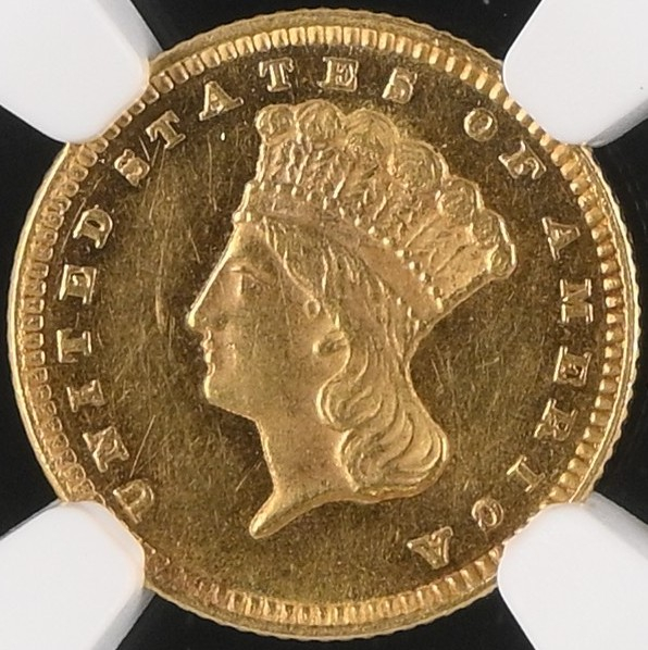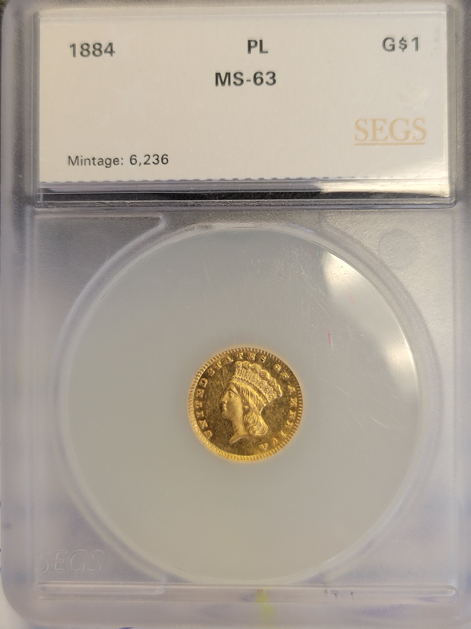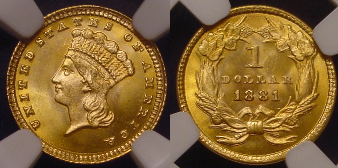 1880 This is graded MS-65. The mintage is low at 1,600, but the survival rate is high at around 900.