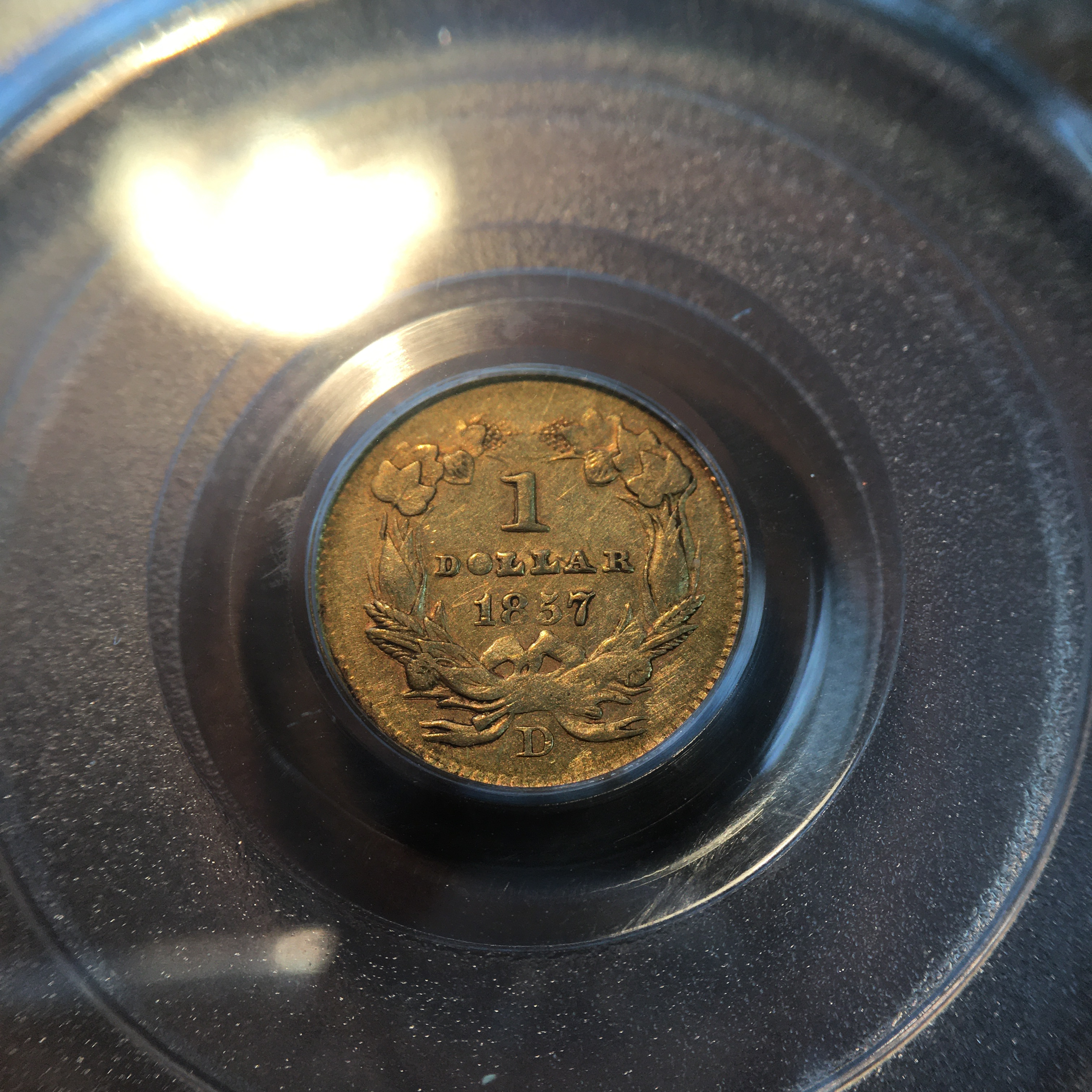 I had visions of putting together a date and mint mark set of gold dollars. I completed with the Type I and Type II coins, minus the 1849-C Open Wreath which is rare with 5 or 6 survivors. Then I looked at the prices for pieces like the 1856-D, 1875 and especially the 1861-D. I decided to do a "short set" with the dates in the 1880s, plus a few others I had already found.