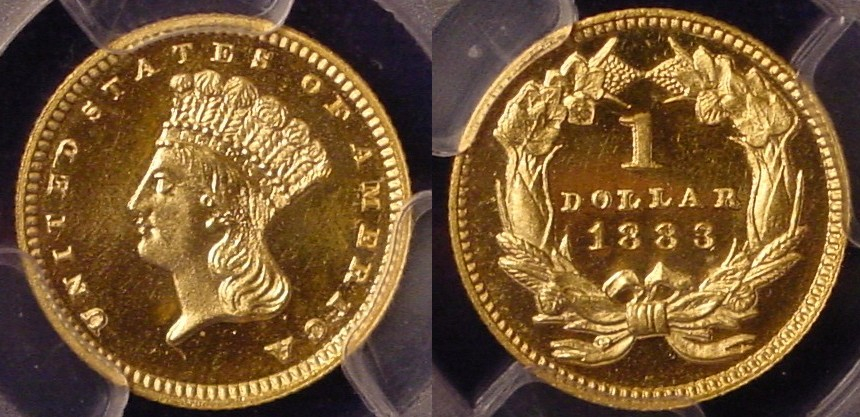 1883 This is my only "old gold" Proof coin. It's an PR-65, CAM, CAC