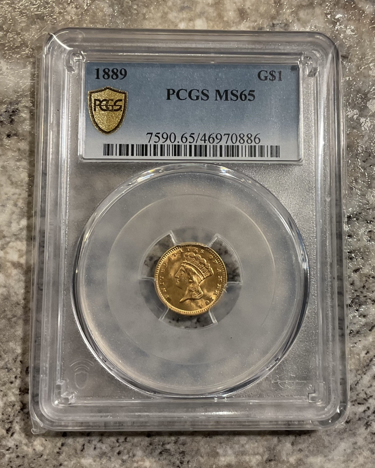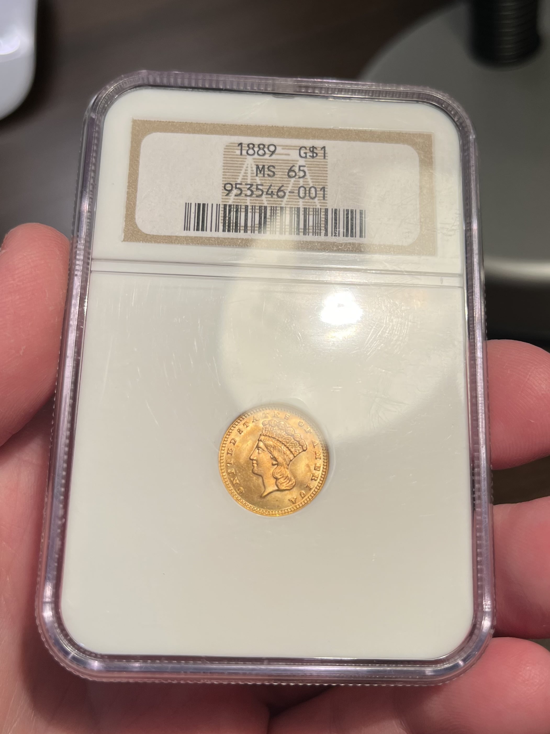 Here's my 1889 goikd dollar. It is graded MS-64.