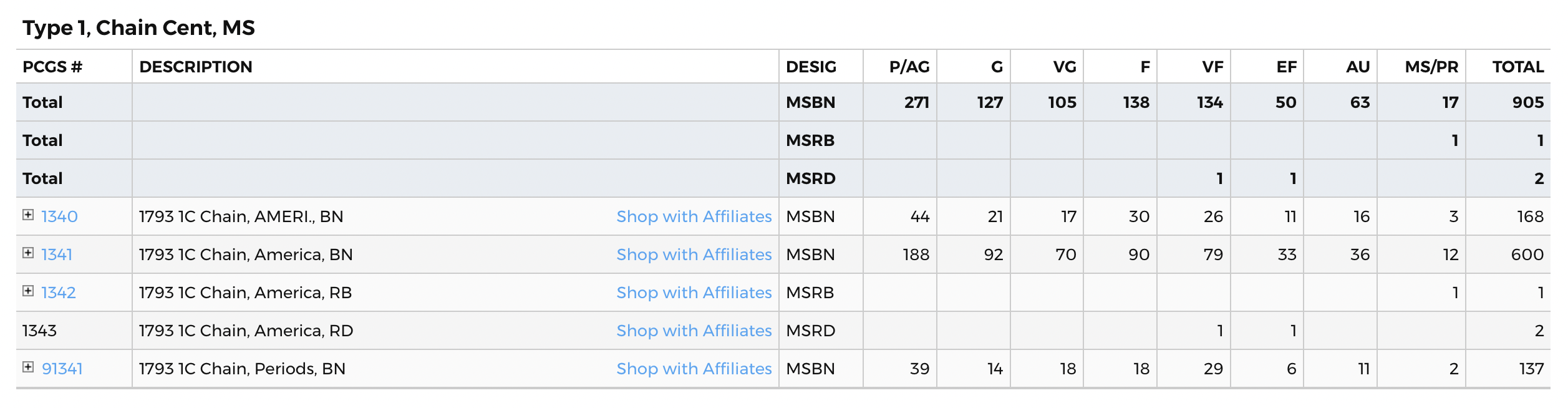 My opinion is that a straight graded Chain cent is quite rare especially if we exclude grades below VG.