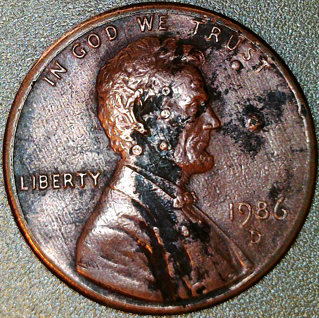 I'm not fully understanding the manufacturing process for the plated cents. Received this one in change the other day and thought it looked weird. Are the dots bubbles or debris under the plating?