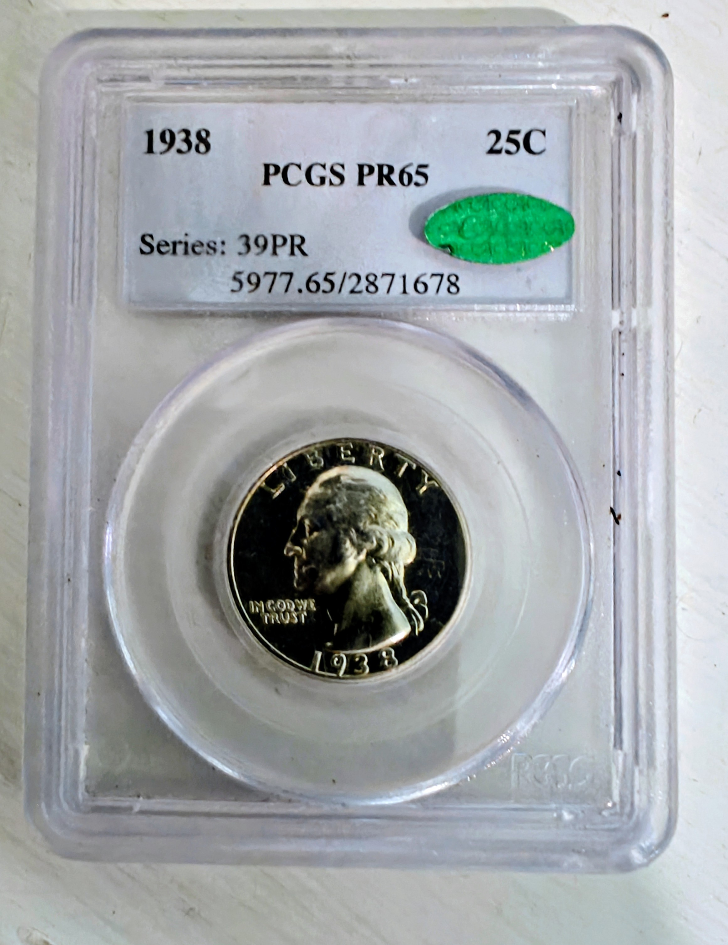 1938 Washington Quarter PCGS PR65 w/ green bean, great looking coin. $200 or trade for 2 oz silver