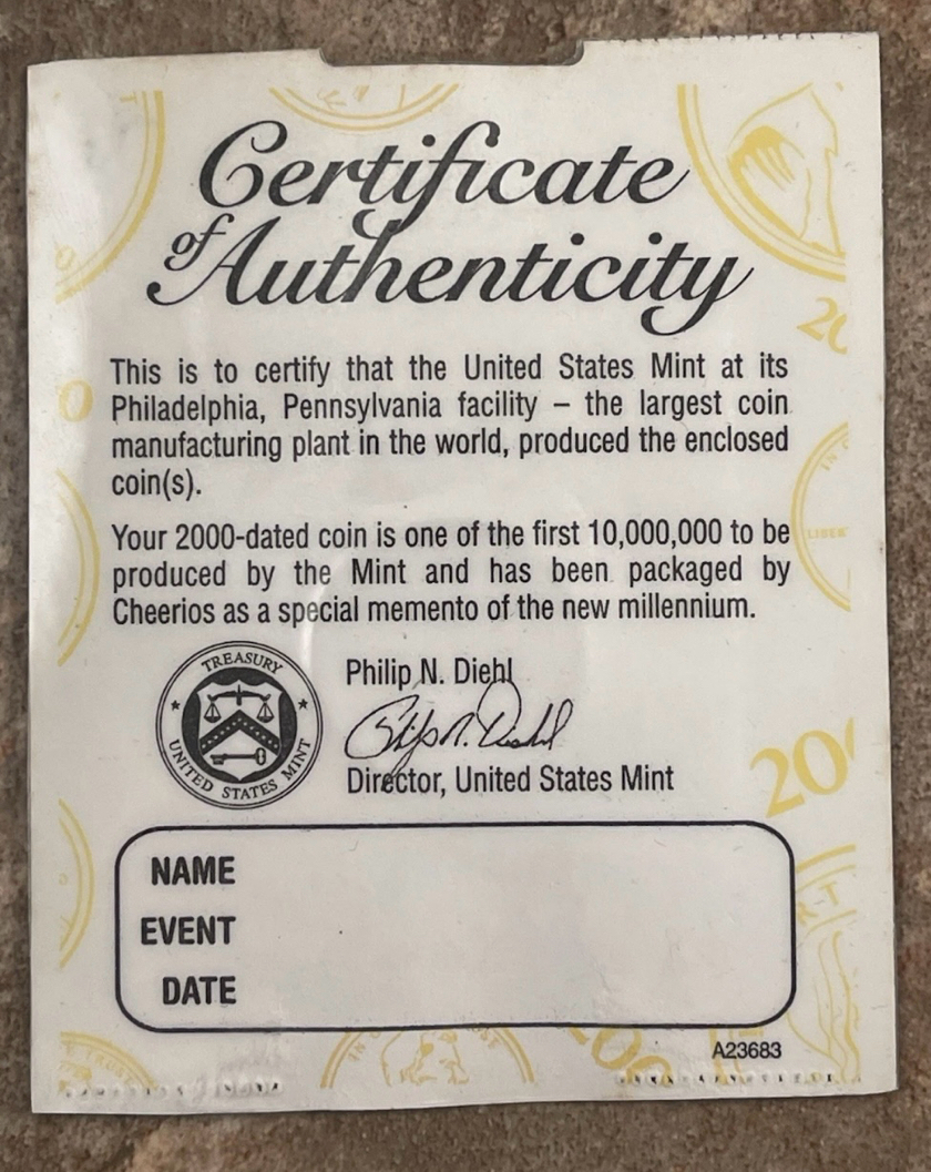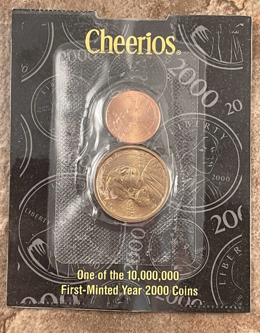I have never seen ANY problems with the plastic on any Cheerios one or two coin packaging. I suspect that this package has been opened and resealed with a common dollar. FWIW, I do not see the die marker on Sacagawea's coat below the date.