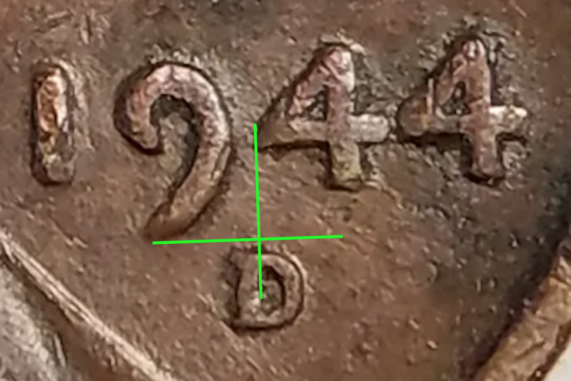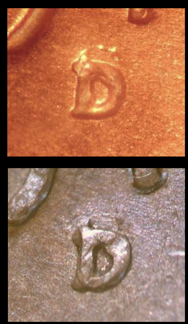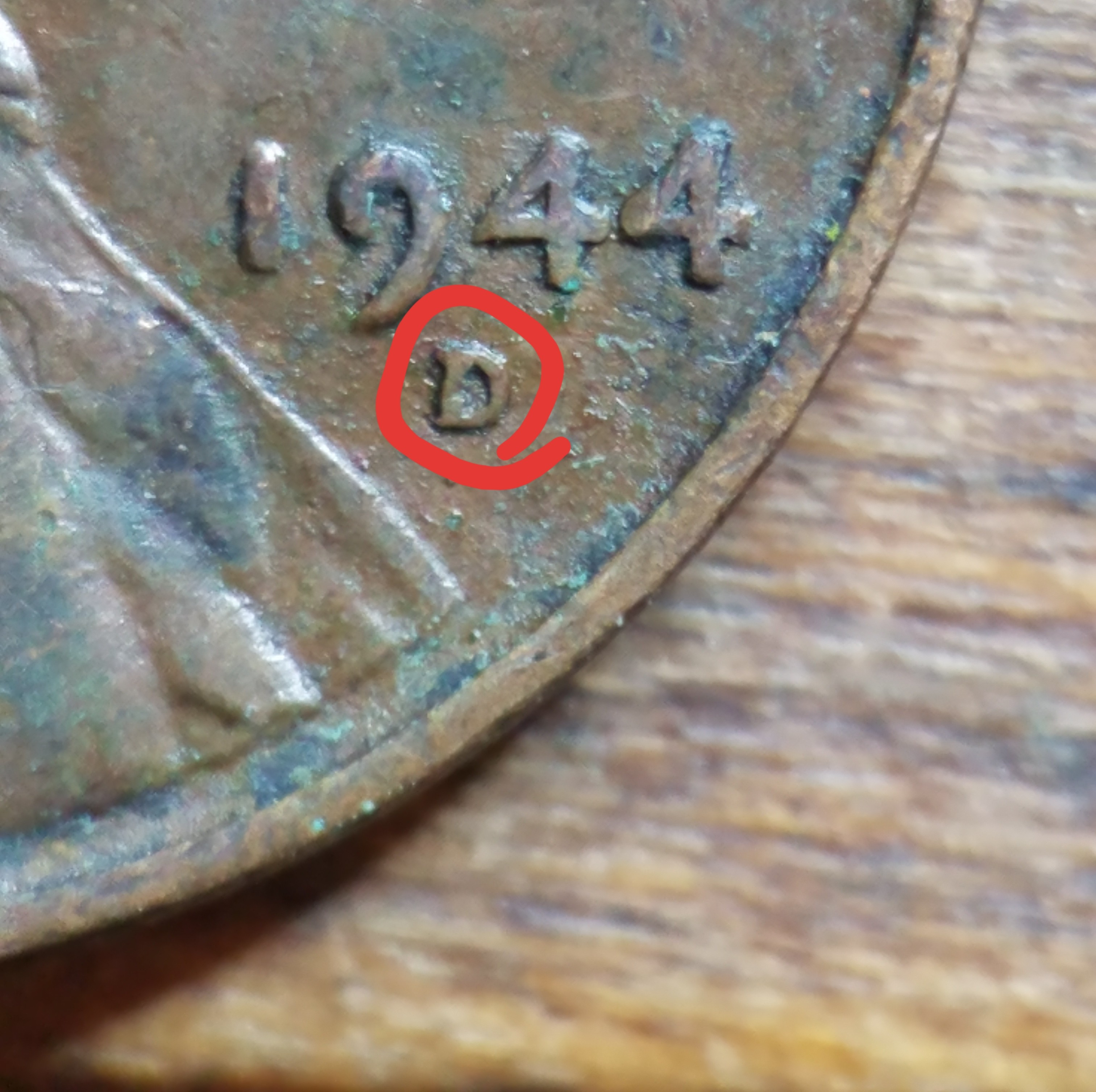 Inside the MM it looks close to what is on The Lincoln Cent Resource, 1944 D/S OMM # 1 and #2. Lincoln's head does appear to have a crack across it, it appears raised but I haven't seen a pic of that marker. OMM 1, "Part of the S can also