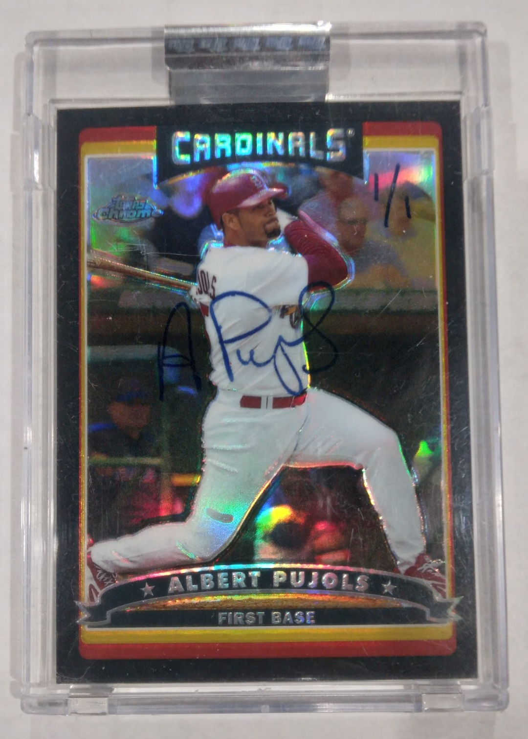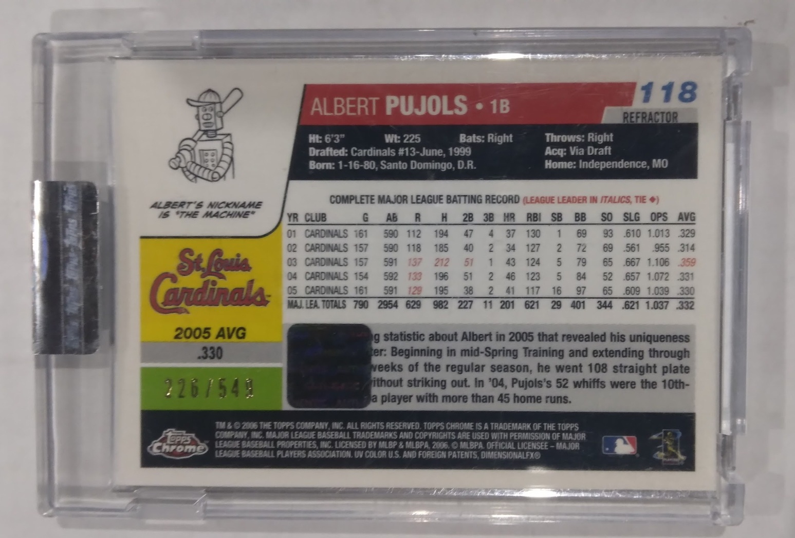 My suggestion is find someone to look up the sticker on back for step one. If it doesn't match the database- dead right there. If it does match the database for Pujols then dig into production / distribution proof. I see alot of time proving its existence required for this one. I'd have taken that offer with a 'sold as is" cavaet and ran