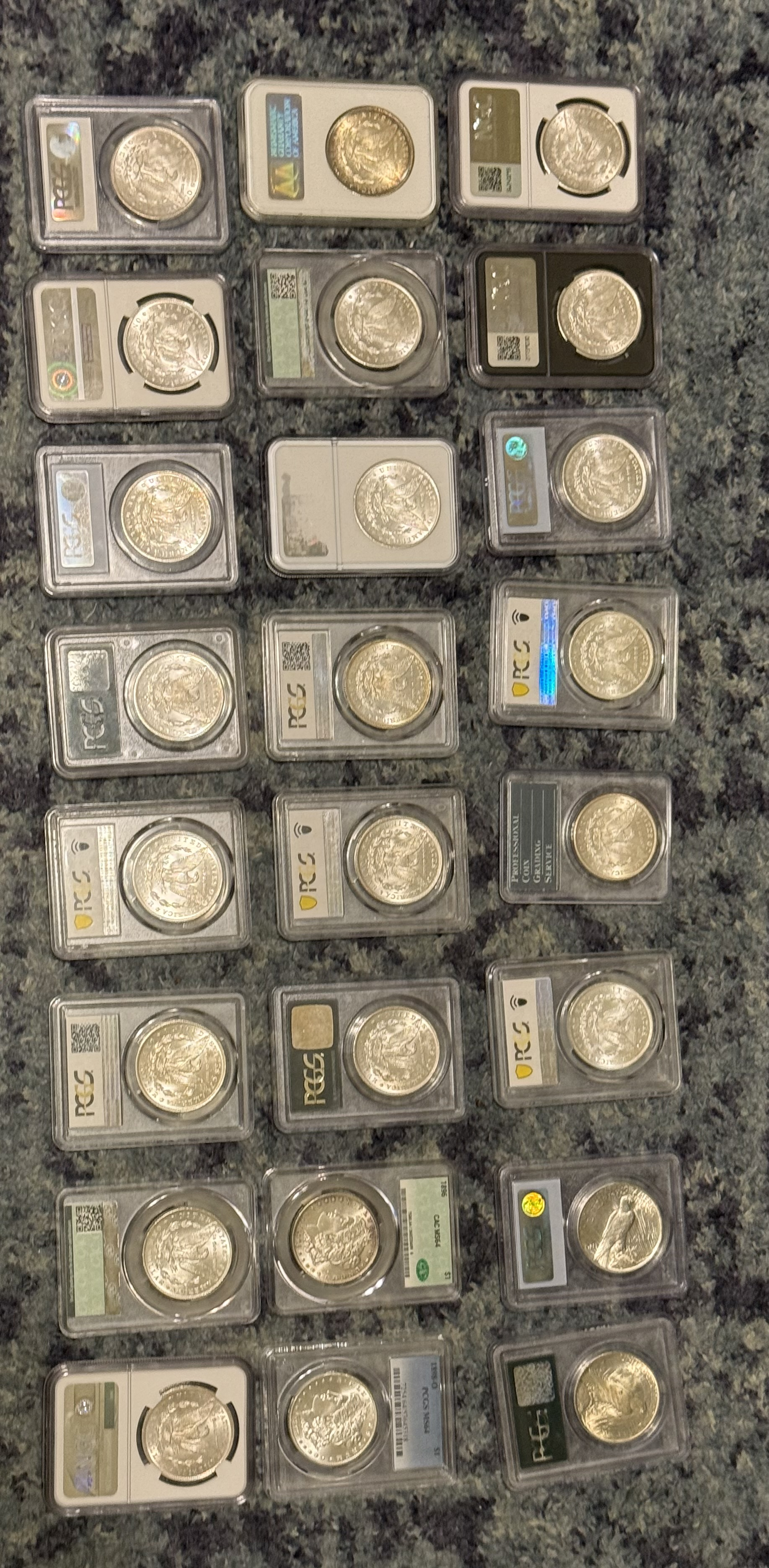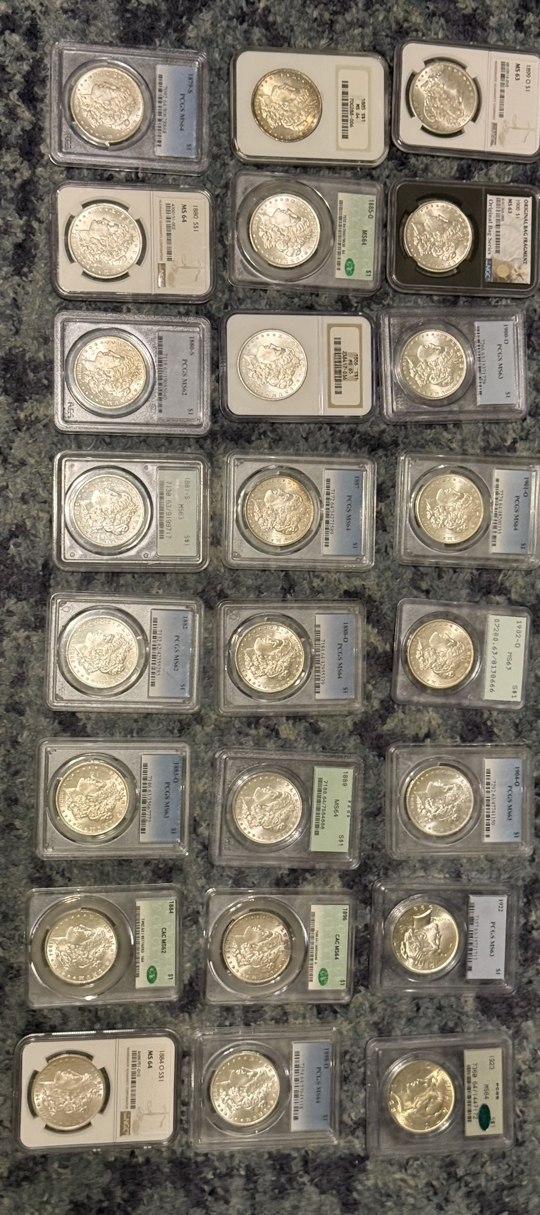 Hello, I’m a teenage collector and I want to see what you guys think of my collection of slabbed silver dollars. There’s supposed to be a 1921-P Morgan in the mix but it was sent to PCGS for a crossover submission. I’ll hopefully be adding four morgans to the mix once my other PCGS submission arrives. But until that happens, here is my full collection! If you want to see one of the coins by itself, just ask and I’ll post pictures of both sides in this post. Anyway, I just want to see your opinions on my collection! I started collecting silver dollars in July 2023, starting with the 1882.