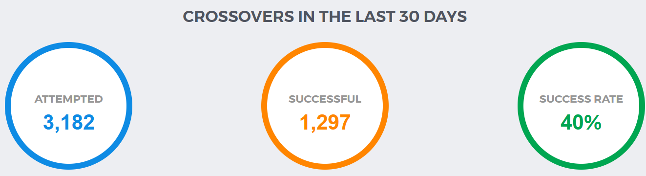 Further, here is the published success rate for crossovers. Note that I believe this includes CACG and ANACS but we're also looking at selection bias as most of these coins are probably going to be on the upper end of the spectrum as the submitters expected them to cross, but 60% of them are disappointed. The success rate would not be this low if they were not significantly different.