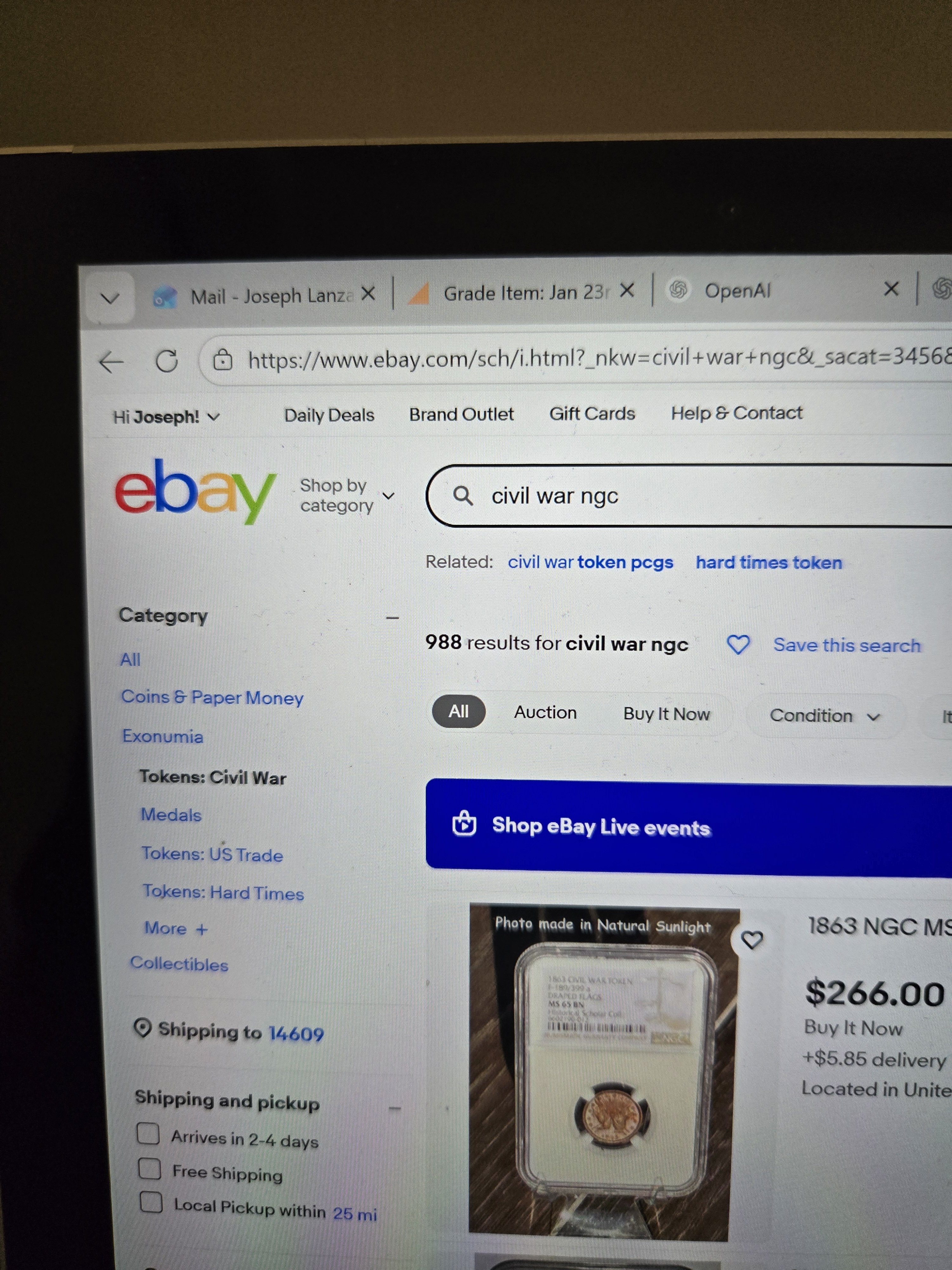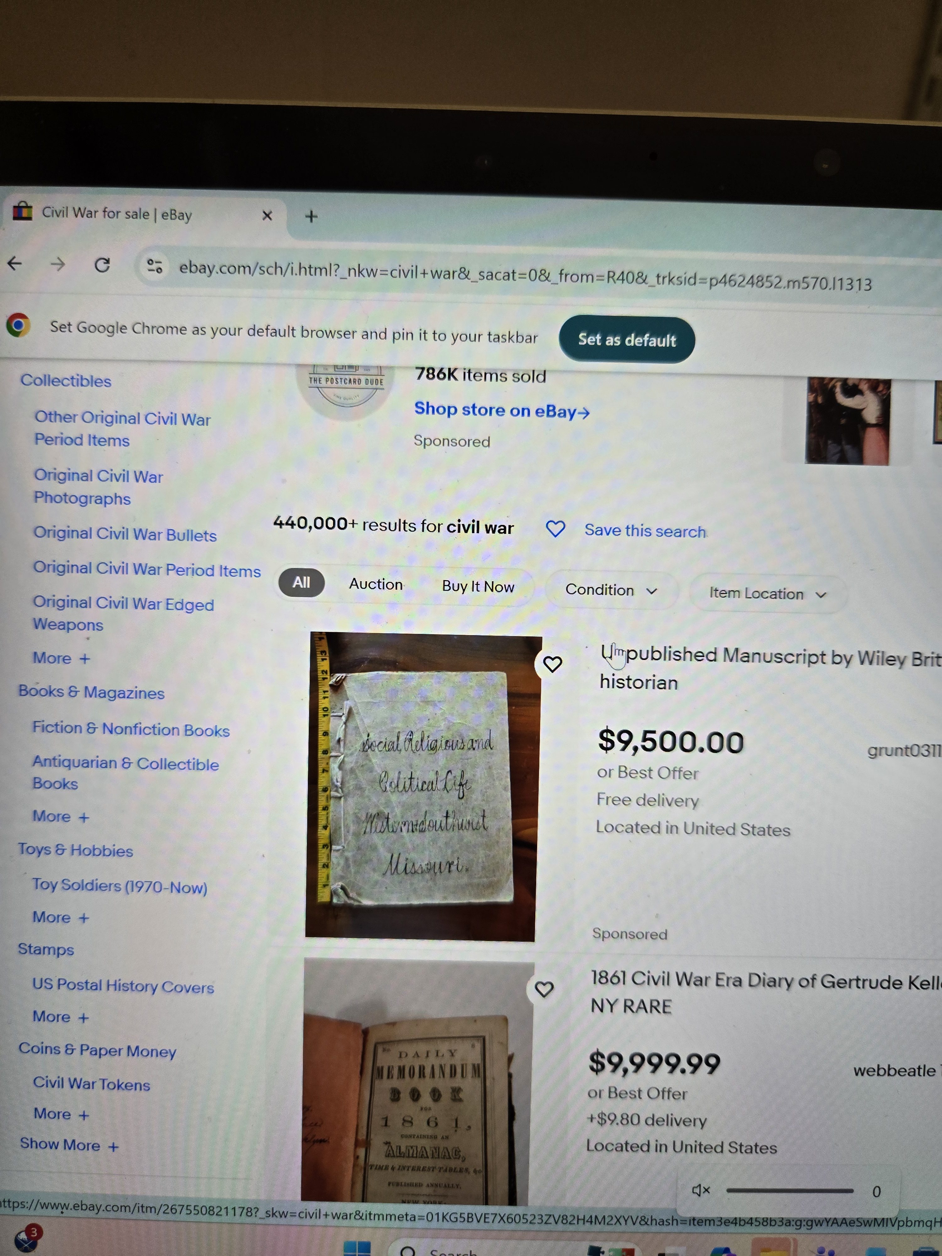That was annoying enough, but now this morning I tried to access the Civil War Tokens category under Exonumia, and the links have all disappeared from the sidebar. Now when I went to Exonumia, I got nearly 600,000 listings that can only be sorted by start date or price. The menu on the left that would allow you to click on subcategories like CWTs or Love Tokens is gone, replaced by a list of Top Categories.