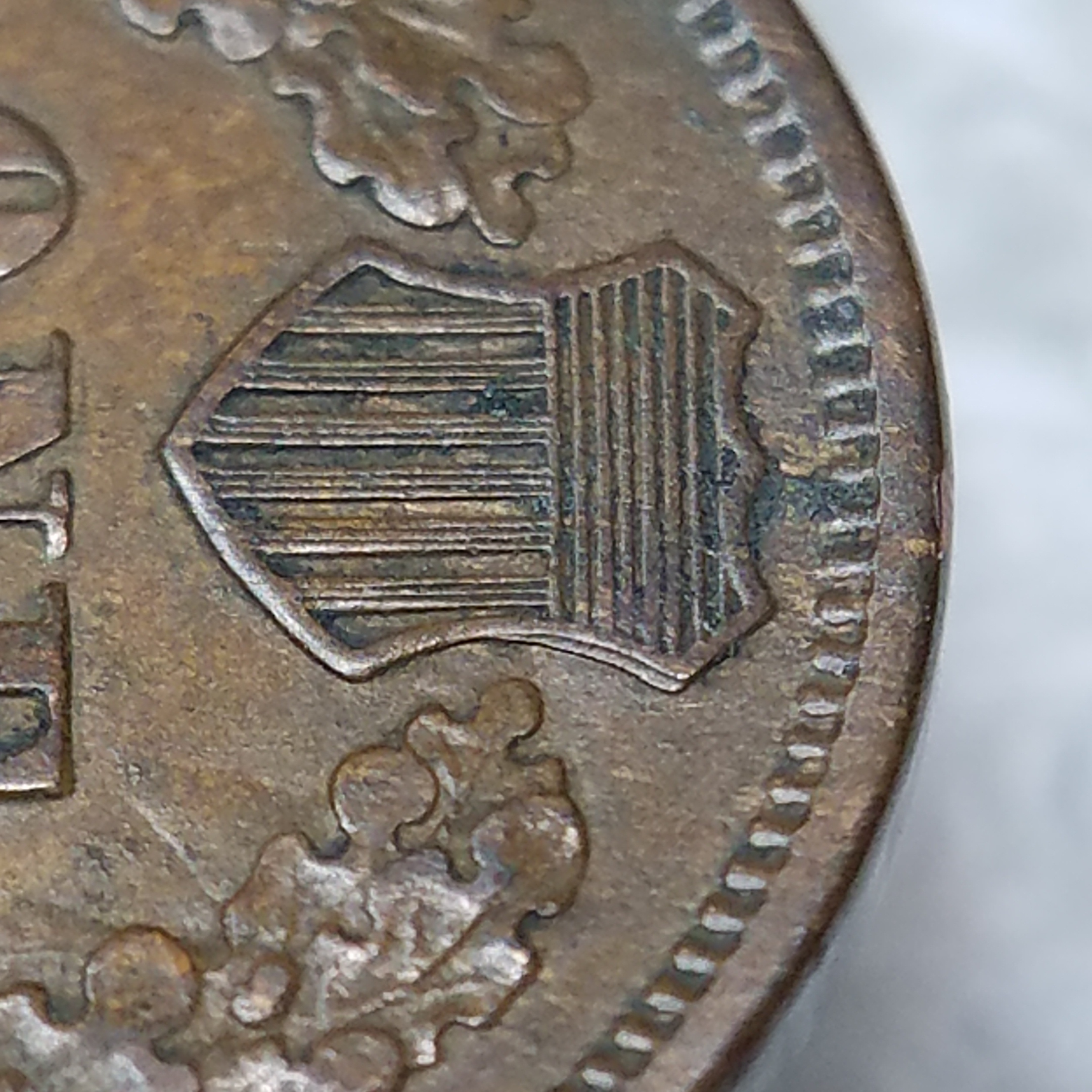Been out a couple days but back to it now. Thanks, I was fairly certain of the shield clash on the neck. Must of had a miscommunication before. This brings me back to wondering how such a strong clash occurs in the depths of the recess of the obverse die device (Liberty that is). Perhaps an elevation profile (or whatever it would be called) would yield some good information (arching or non-flatness of die(s)). One of these days I might have to get one of these shield clashes.