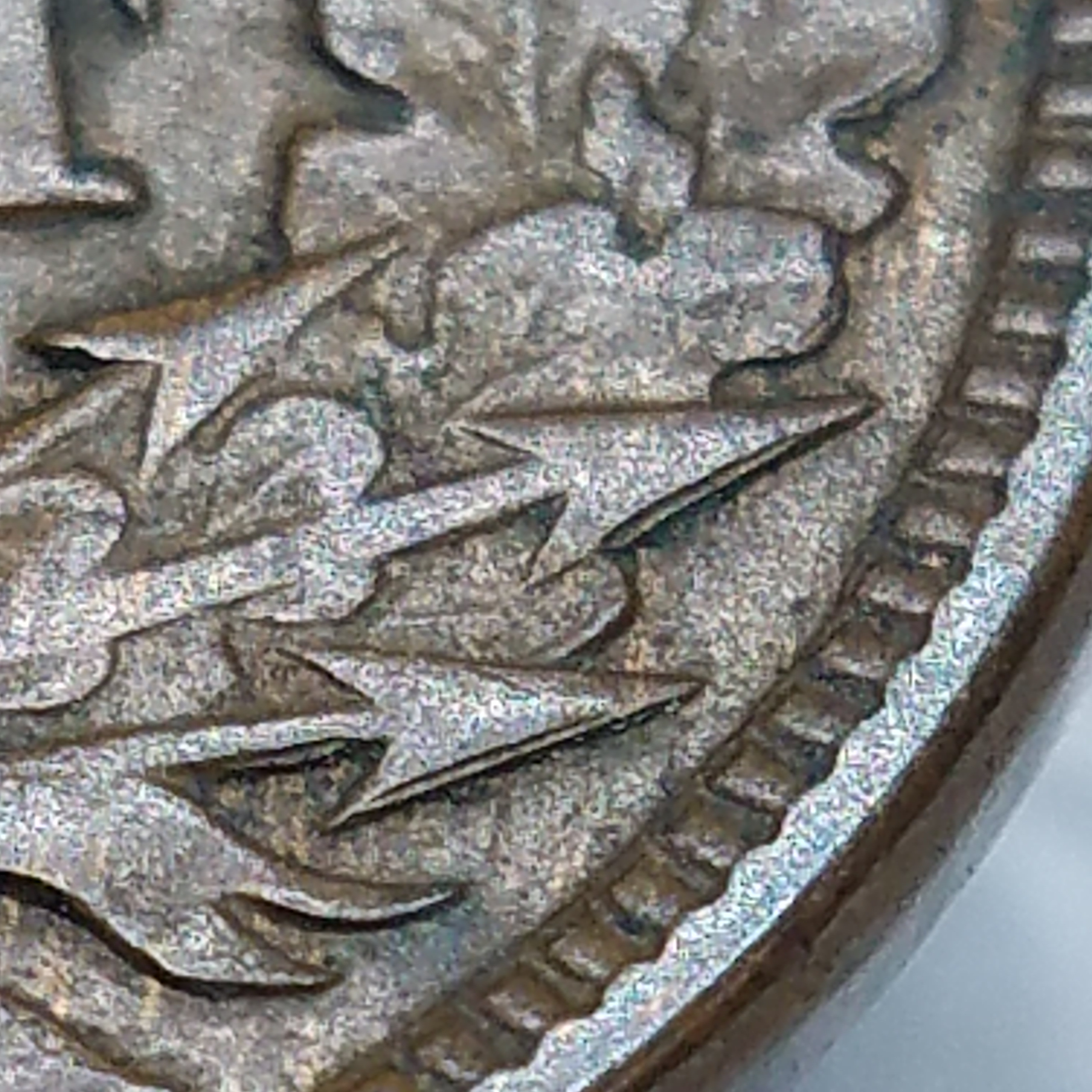 Eagle Feathers in the left Obverse field in front of Chin and Neck