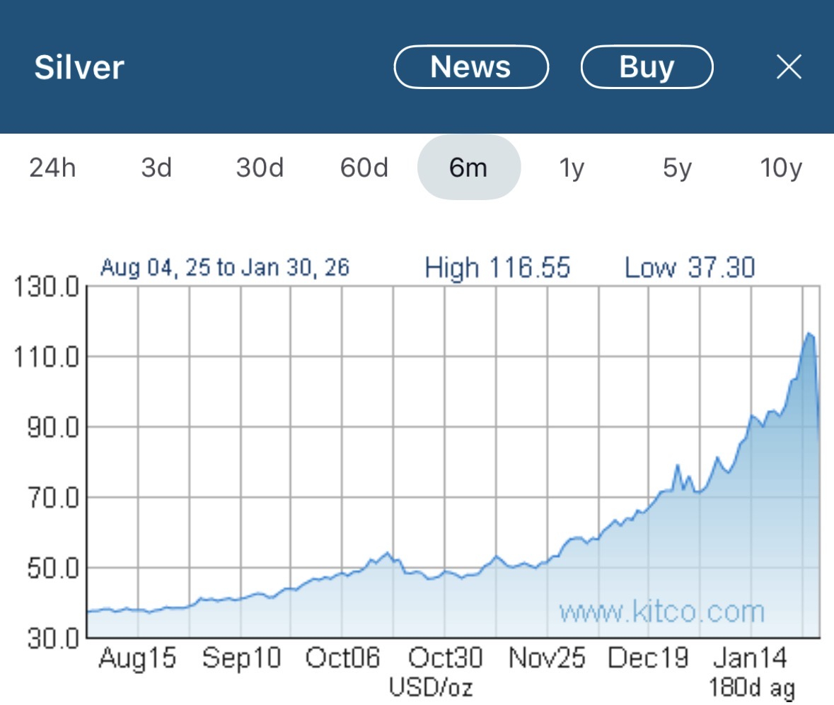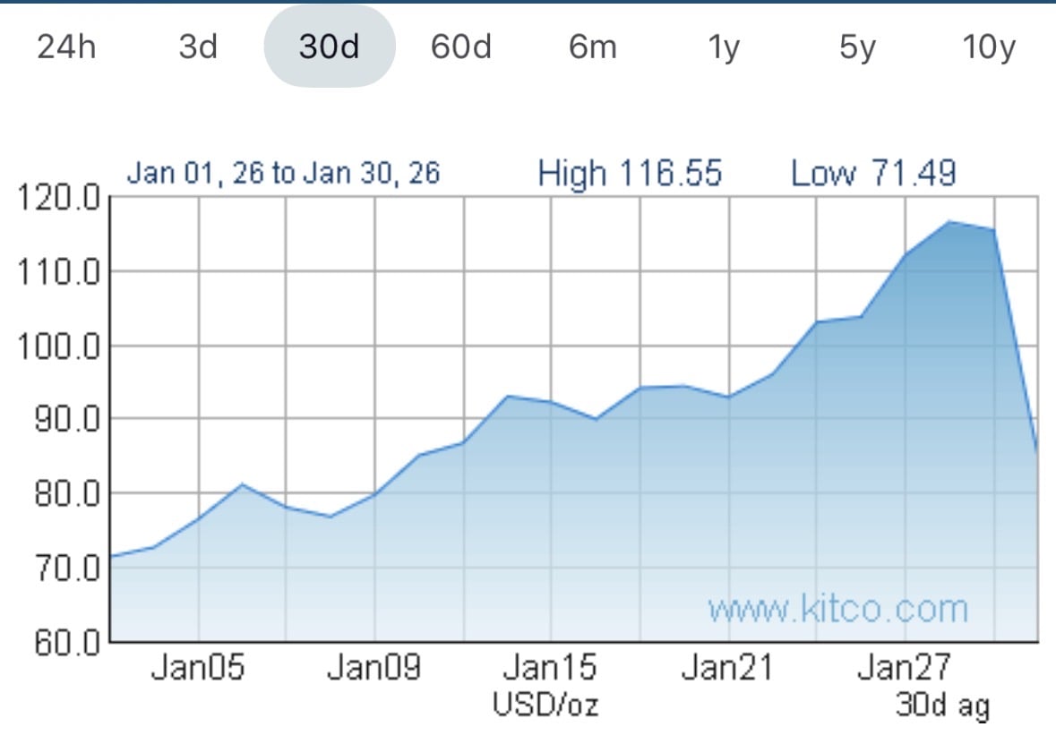 To put a little perspective on the scenario, silver was $70 thirty days ago and $35 just six months prior.