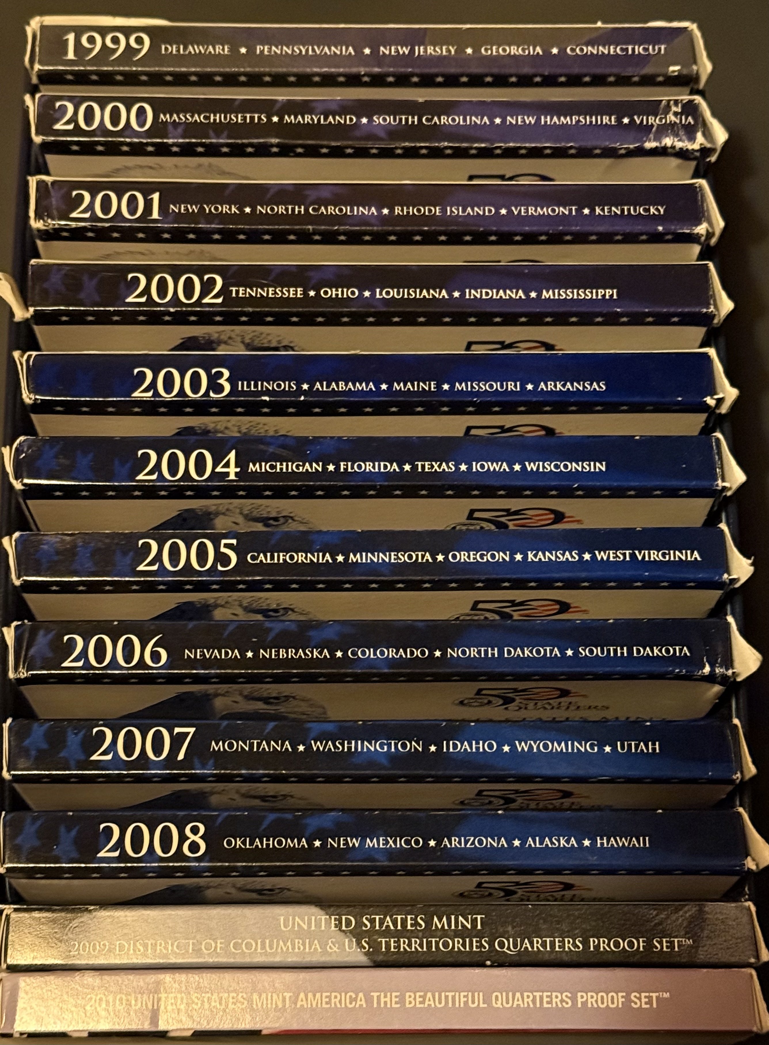 Complete proof Statehood Quarter set including 2-2009 US Territories and 2010 ATB sets.