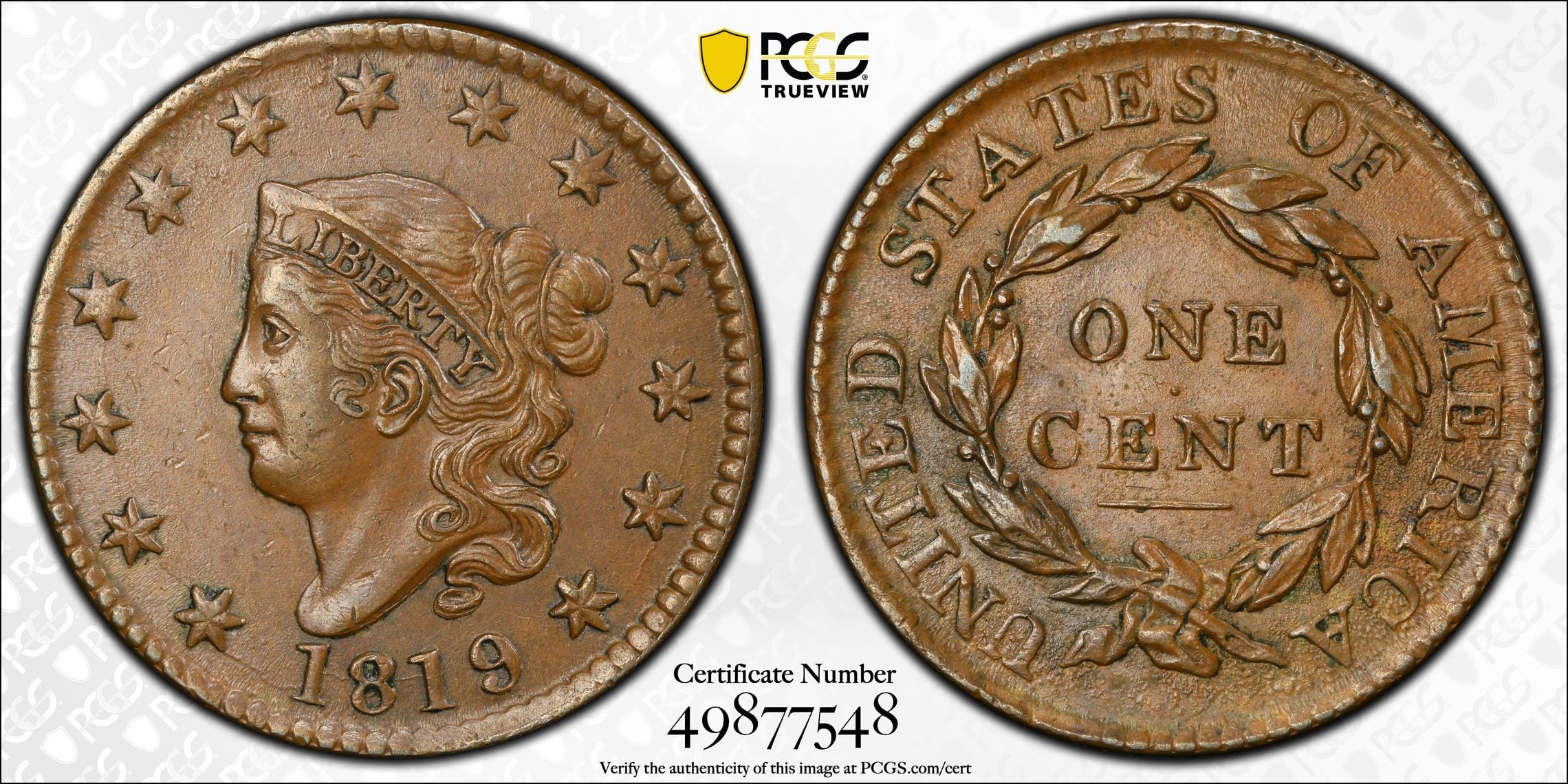 PCGS standards are pretty high for what I collect... mostly early copper, but I've managed a pretty decent batting average for getting them holdered. This one (1819/8 Coronet Head LC) was purchased raw on ebay for ~$300 in 2021 or so. She's been in my 7070 album as a type coin and then moved into my Wayte Raymond album of Large Cents (vol II). I'm now starting the process of getting some of my higher end coins certified (and recertified for a few) and I sent this one in to our hosts. I was hoping for AU53... she came back 58: