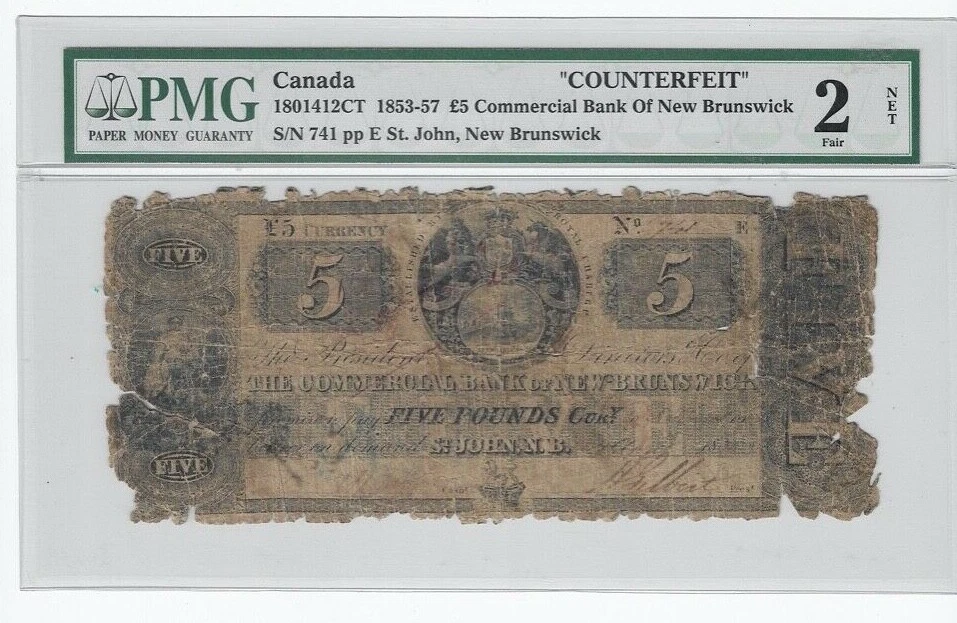 I assume since this is holdered that this is considered a contemporary counterfeit. I wanted to look at the engraving details to evaluate that, counterfeits usually had poor details. But the note is extremely worn - which could have been intentional to make an iffy note easier to pass - which makes this hard to check. A higher res scan would definitely help. And it is strange that "counterfeit" is in quotes, that also suggests to me that this was written/stamped on the note, but I don't see that. A scan of the reverse would help. I don't have any reference books for Canadian obsoletes, so I can't look this one up.