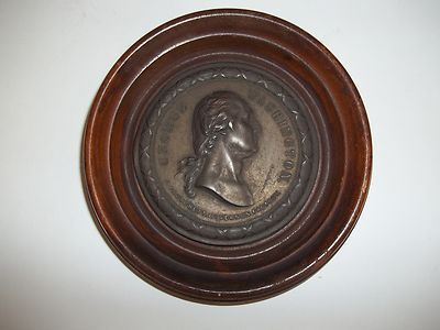 The plaster piece appears to be a cast made from one of the later George Washington electrotype shells made for sale by James Crutchett (if it is 70mm or smaller in diameter). I do not believe that it was involved in the actual production of the smaller electrotypes which omitted the wreath and bands found on the original electros . Those were usually trimmed and mounted on wood or in frames as wall hangings. The portrait of GW is most likely taken from Duvivier's "Washington Before Boston" and produced by Demarest of New York City.