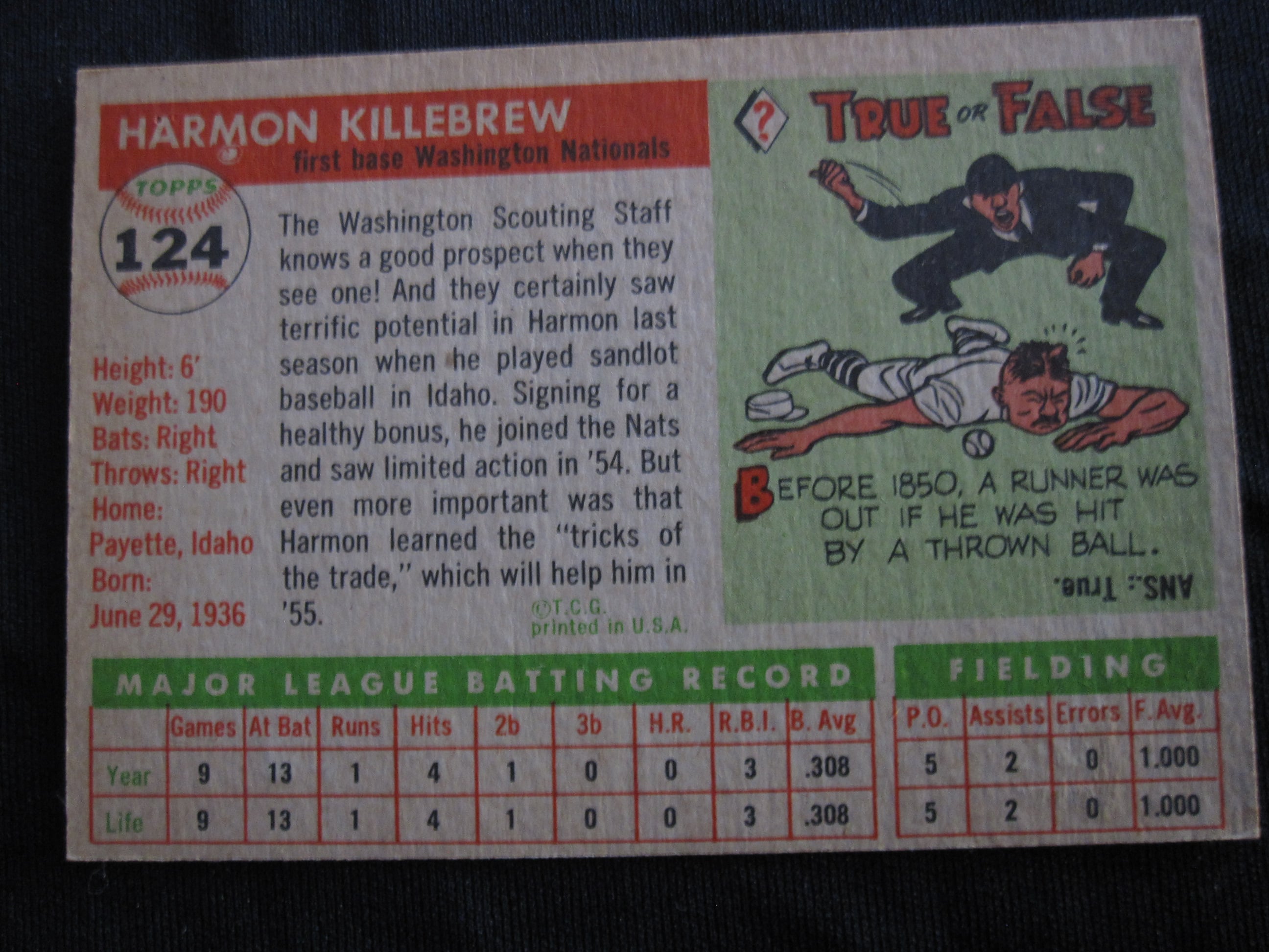 A while ago I asked about a few cards if I should get them graded or not. I got some excellent ideas on what to do and also an option I hadn't considered. I now found a '54 Mays and '55 Killebrew, I purchased quite a while ago. Back then, I really didn't know what I was doing and purchased these cards just on the fact they had great color and looked good, not really considering centering or condition....