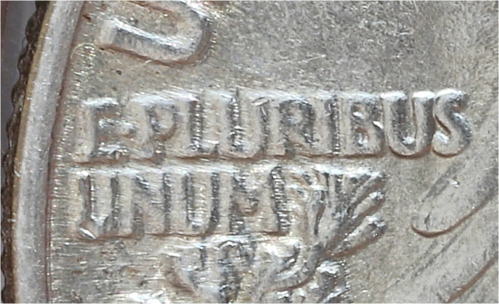 I posted pics of both sides of the coin along with closeups of the motto and designer's initials or lack of.