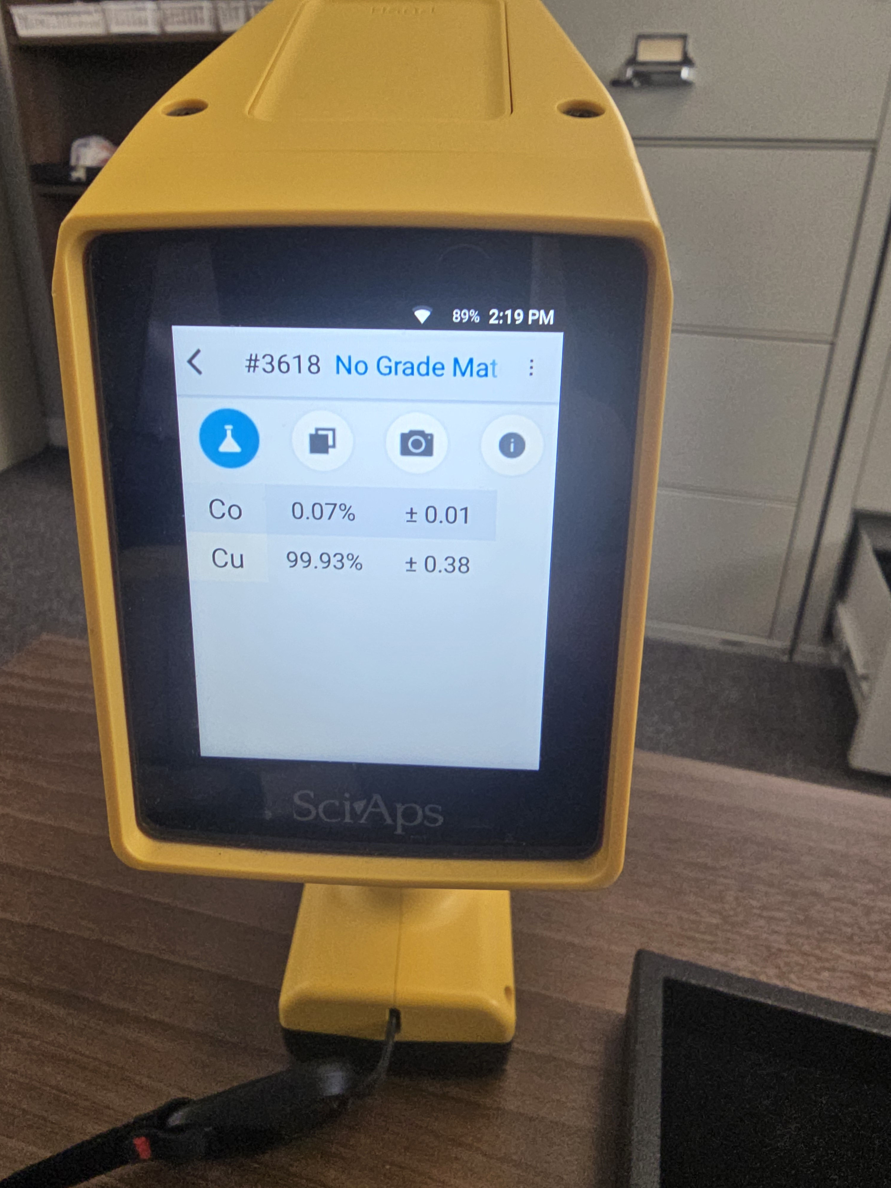 Here is the XRF from my piece. Almost pure copper except for a small amount of cobalt: