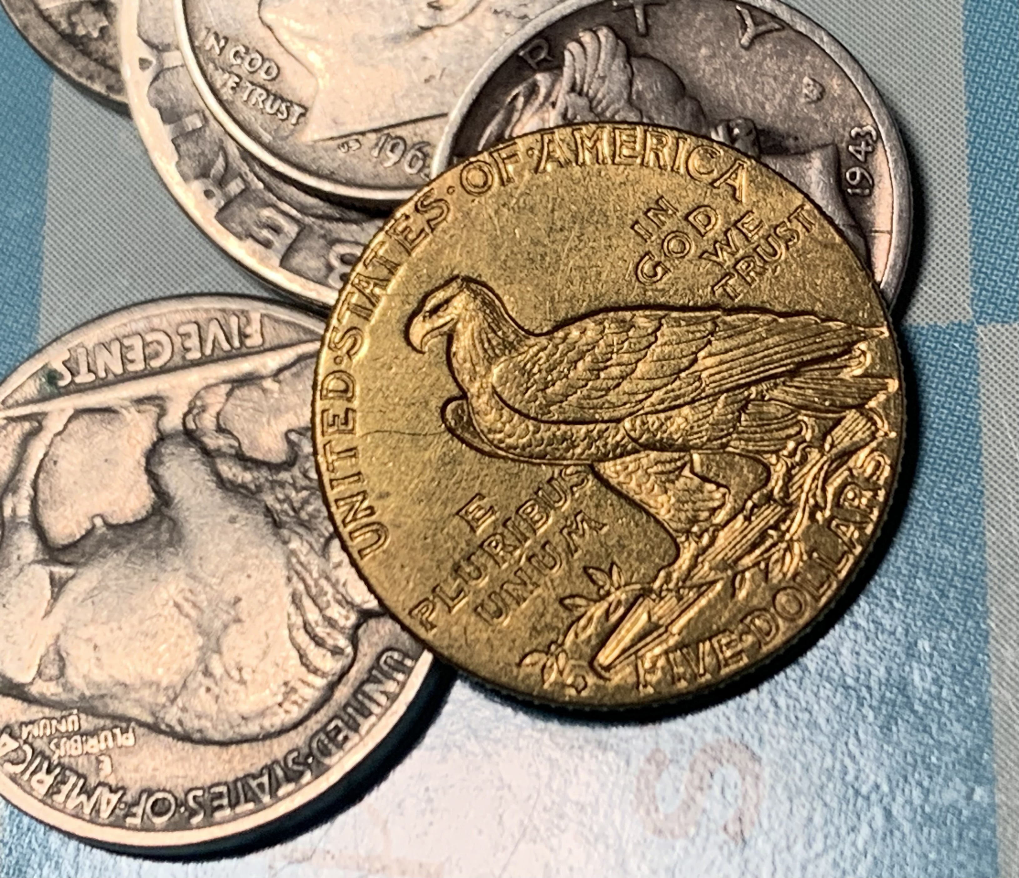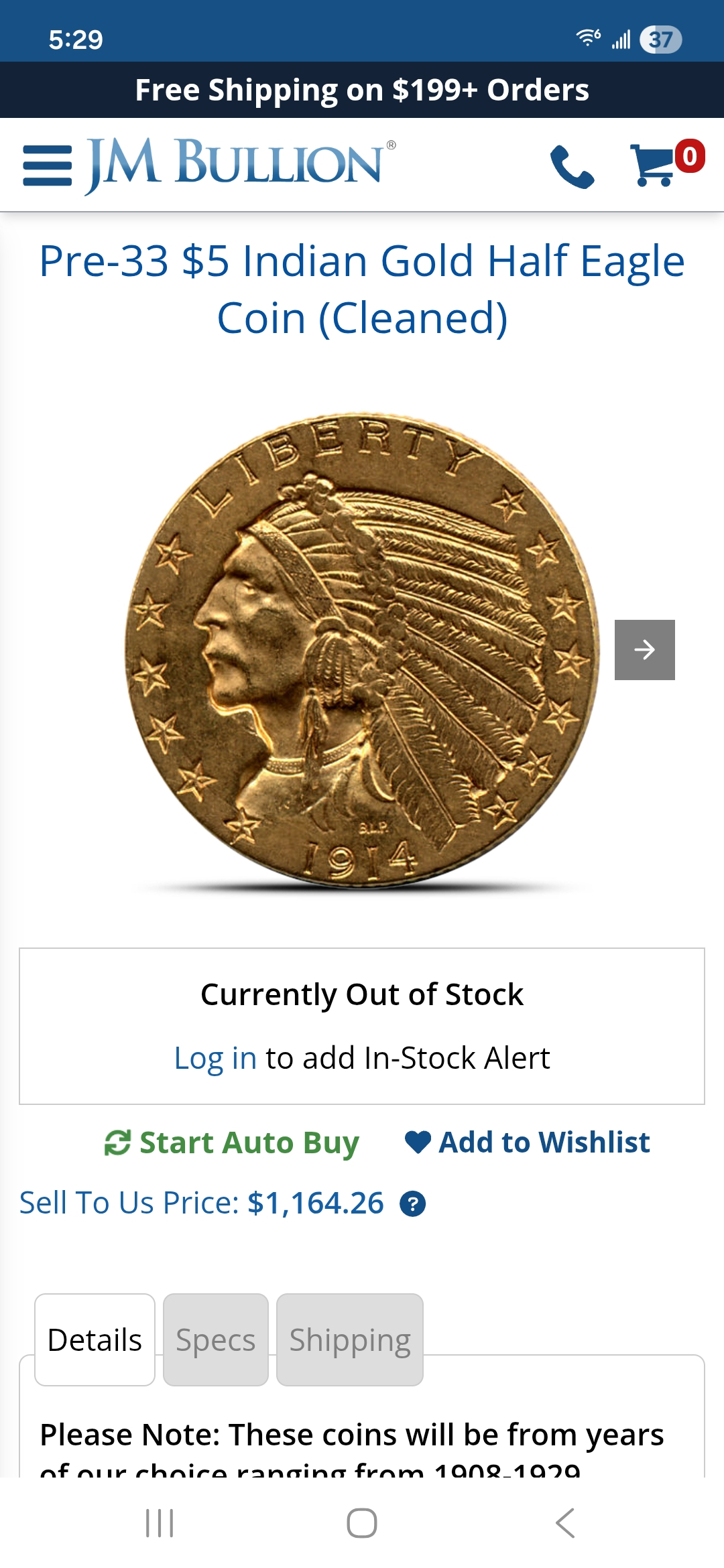 JM Bullion currently has a sell to us price of $1,164.26 for details/cleaned $5 Indians, just sayin...