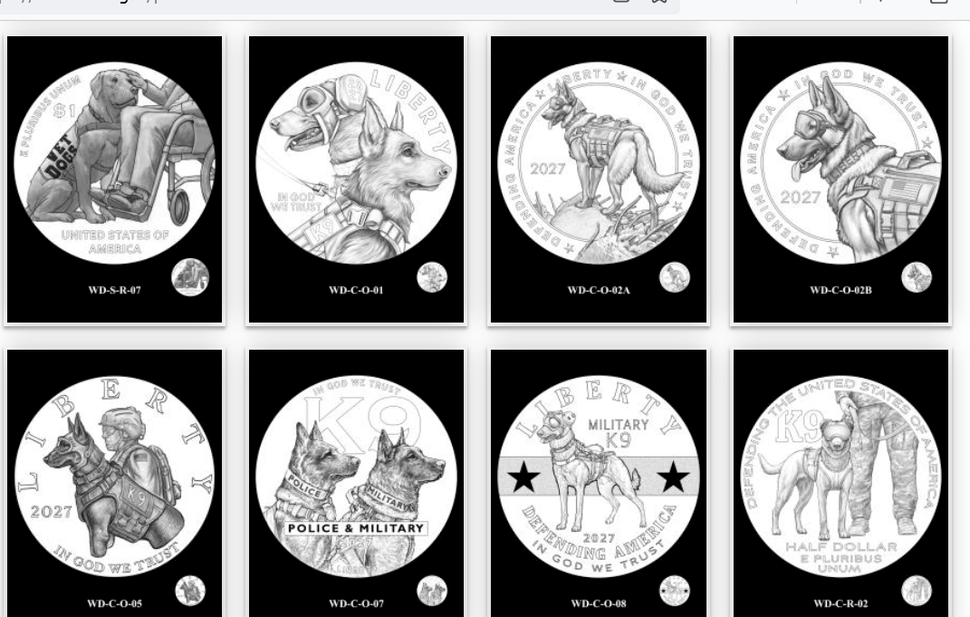 Subject: Review and discussion of the obverse and reverse design portfolios for the 2027 Working Dogs Commemorative Coin Program...