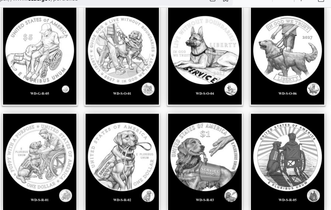 What, no proposed design with a beagle? The ‘beagle brigade’ has done a great and important job at US ports of entry for years in detecting contraband agricultural products. My wife used to work with some of the beagle brigade trainers years ago so we were hoping one of the coins would feature one of those cute, hard working pups!
