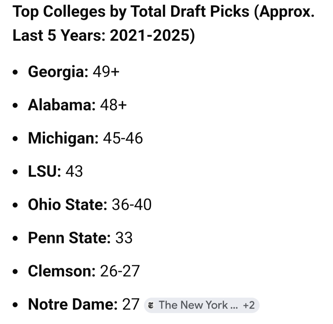 Got me thinking about which schools had the most draft picks recently