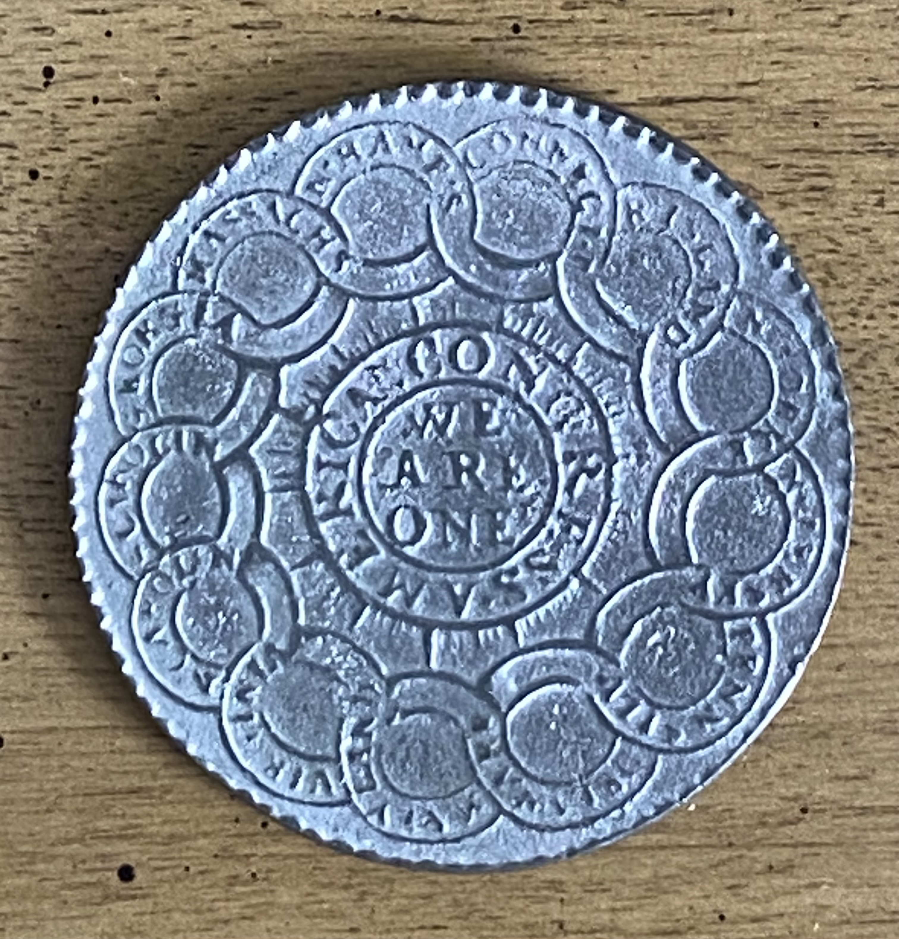 Funny, but my Grandmother bought this copy of a Continental dollar for me sometime back in the early 70’s.(72,73 seems about right from what I remember). No word “copy “ on the replica. May be made of lead or pewter.