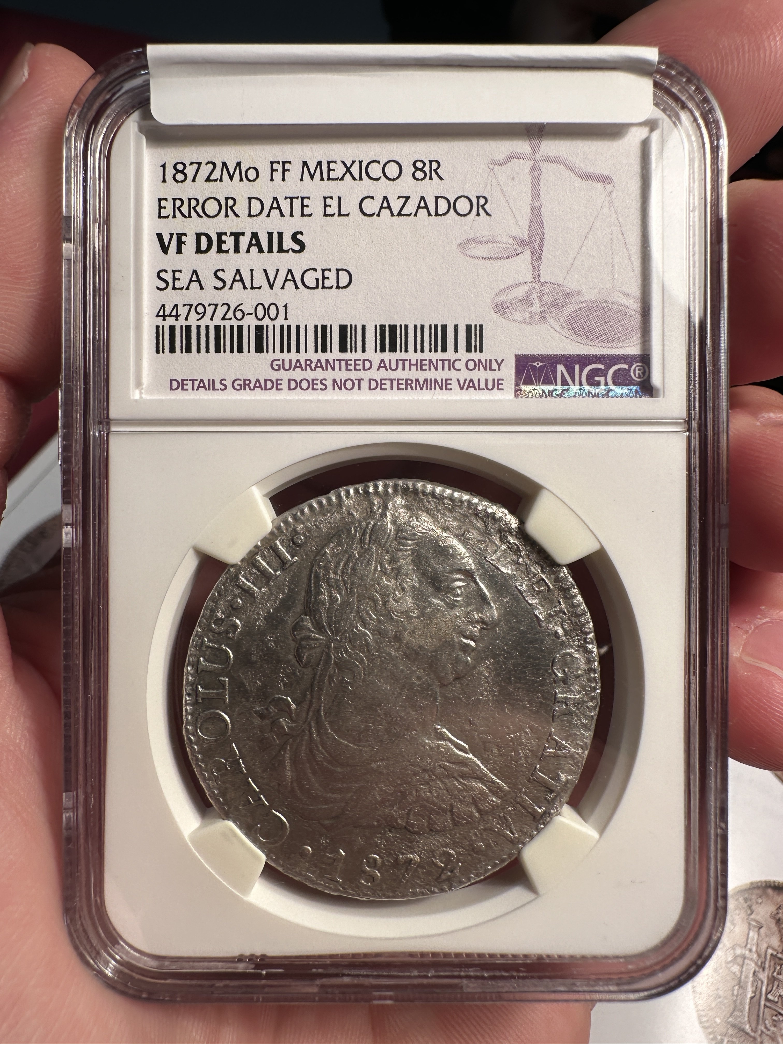 Likely from the 1752 wreck of the Nuestra Señora de la Luz, but I could not find mention of it nor photograph in the 1993 Sotheby's auction catalog, despite a careful study of dies and die marriages by the cataloger.