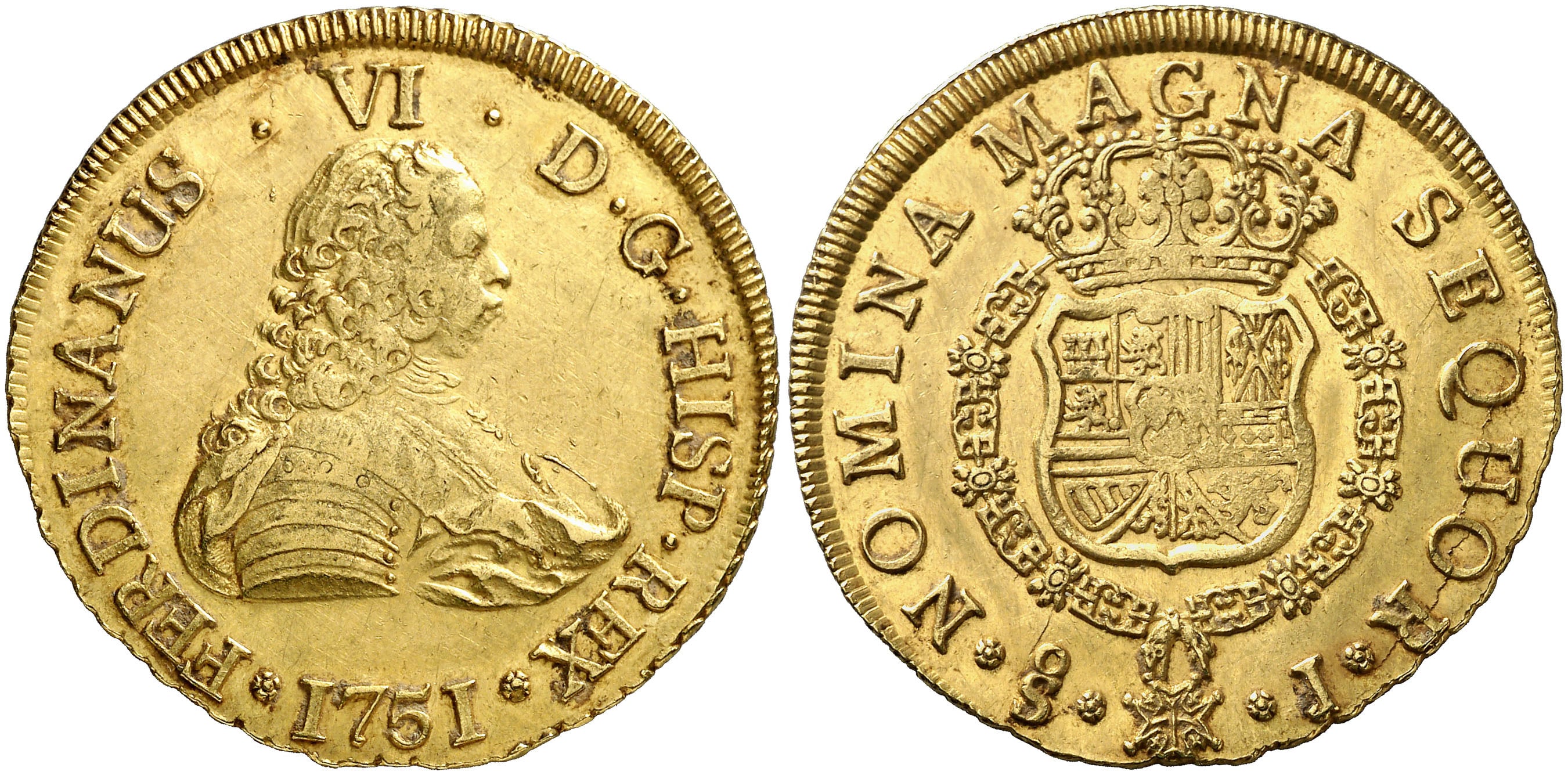 1751 So J 8E with dramatic "FERDINANUS" error.