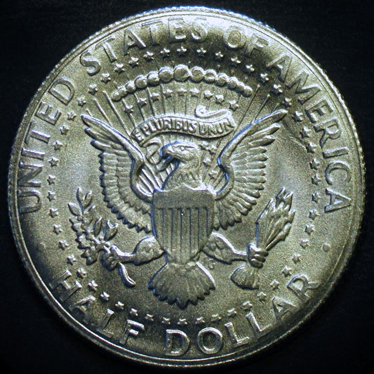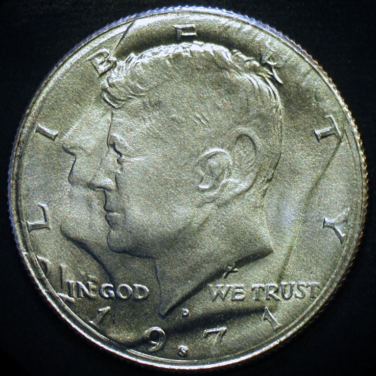 Note the profile of Eisenhower superimposed on this Kennedy Half Dollar, plus the "S" mint mark between the date digits.