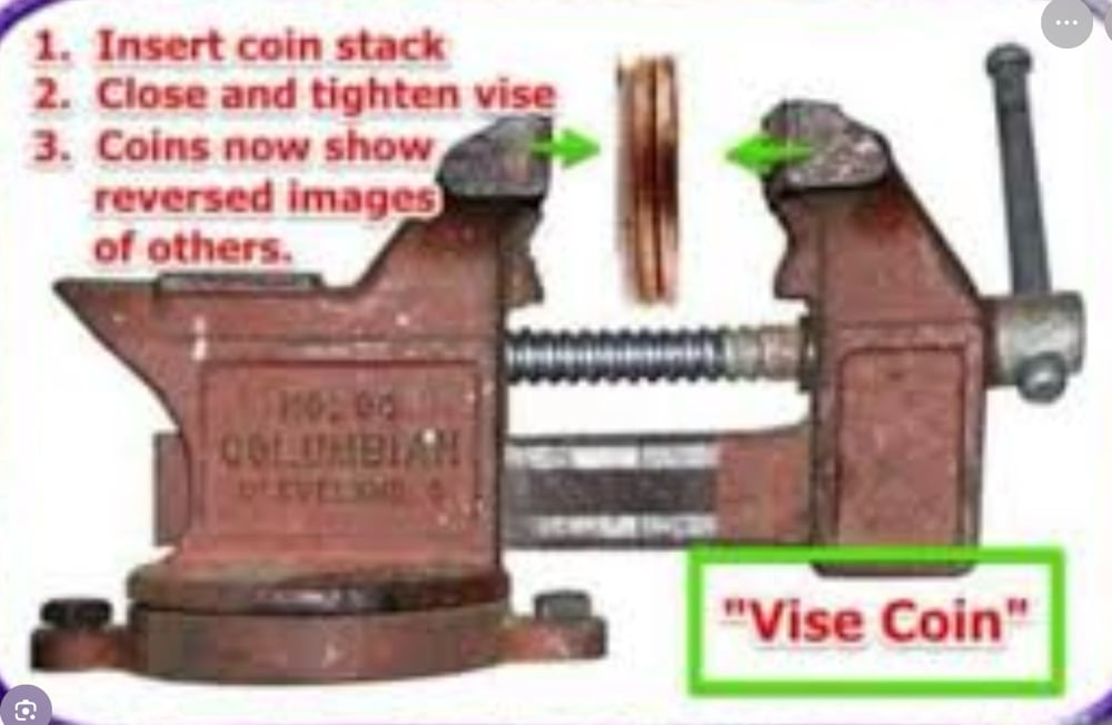 Odd that the two coins were squeezed together such that only the rim was affected, but the person operating the vice can do whatever they want.