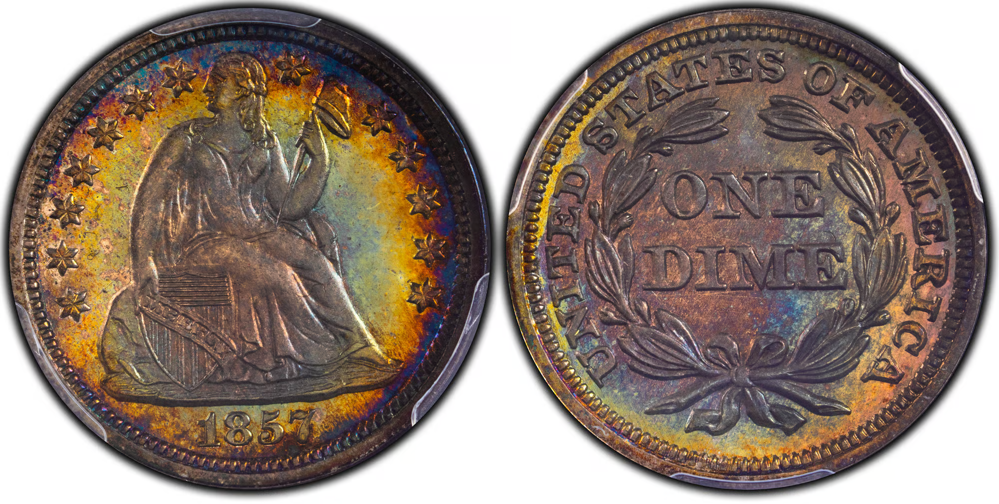1857 stars obverse dime is PF-67+ CAC, and also a Pop1/0
