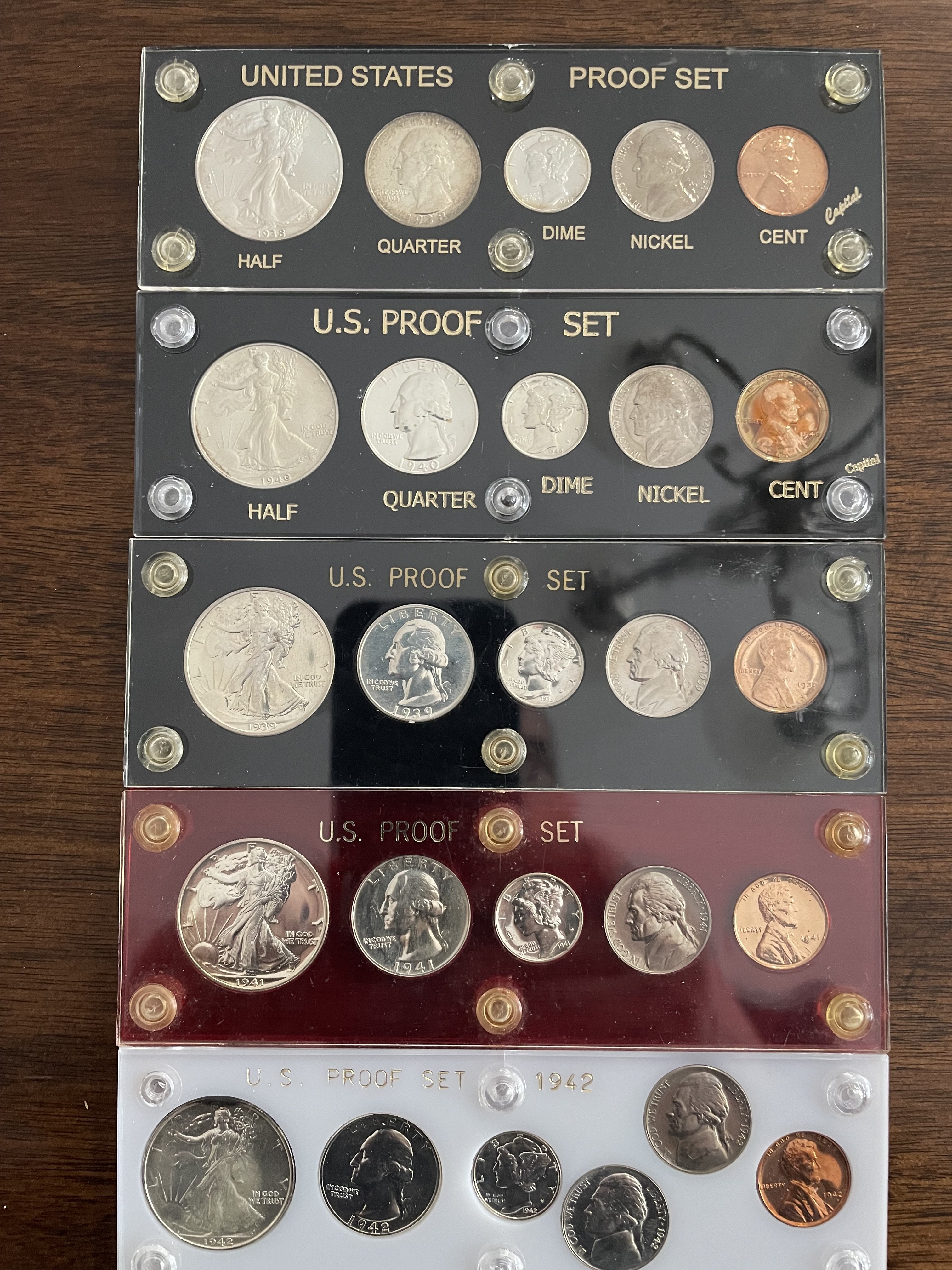 I know this has been on this forum before but I wanted to show my set of proof sets from 1938 to 1964 (no 1936 & 1937 coins are very expensive) most of the coins I bought at local coin shows the rest on e-bay photos from my phone are not the best