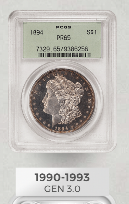 Notes: Some coin collectors believe these to be uncommon when first seeing them. This could be because they were marketed to non#65534;collectors instead of given away to collectors and dealers. Kiefer relates, "This slab was once thought to be scarce. It might still be semi scarce if no one saved them, but recently I found out from David Hall who told me 'These were an item in a Random House marketed Scott Travers "Coin collecting starter kit." I believe we did either 50,000 or 100,000 of