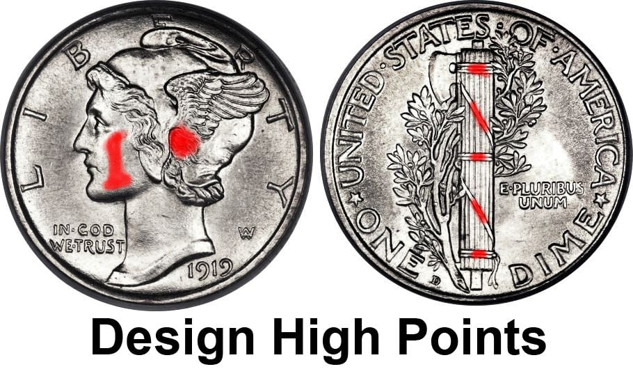 I collect mainly 58s, here’s 2 Mercury dimes where the one with a 58+ grade has more obvious wear than the one without the + grade. I really like how both look though, I don’t mind a little wear, it gives them character