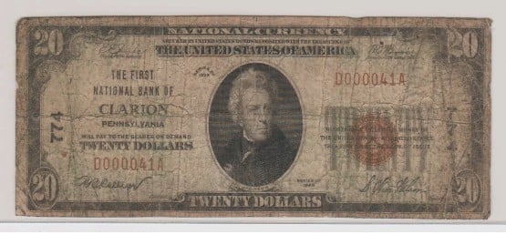 SOLD. 1929 $5 & $20 Nationals AG/Good -$45 SHIPPED